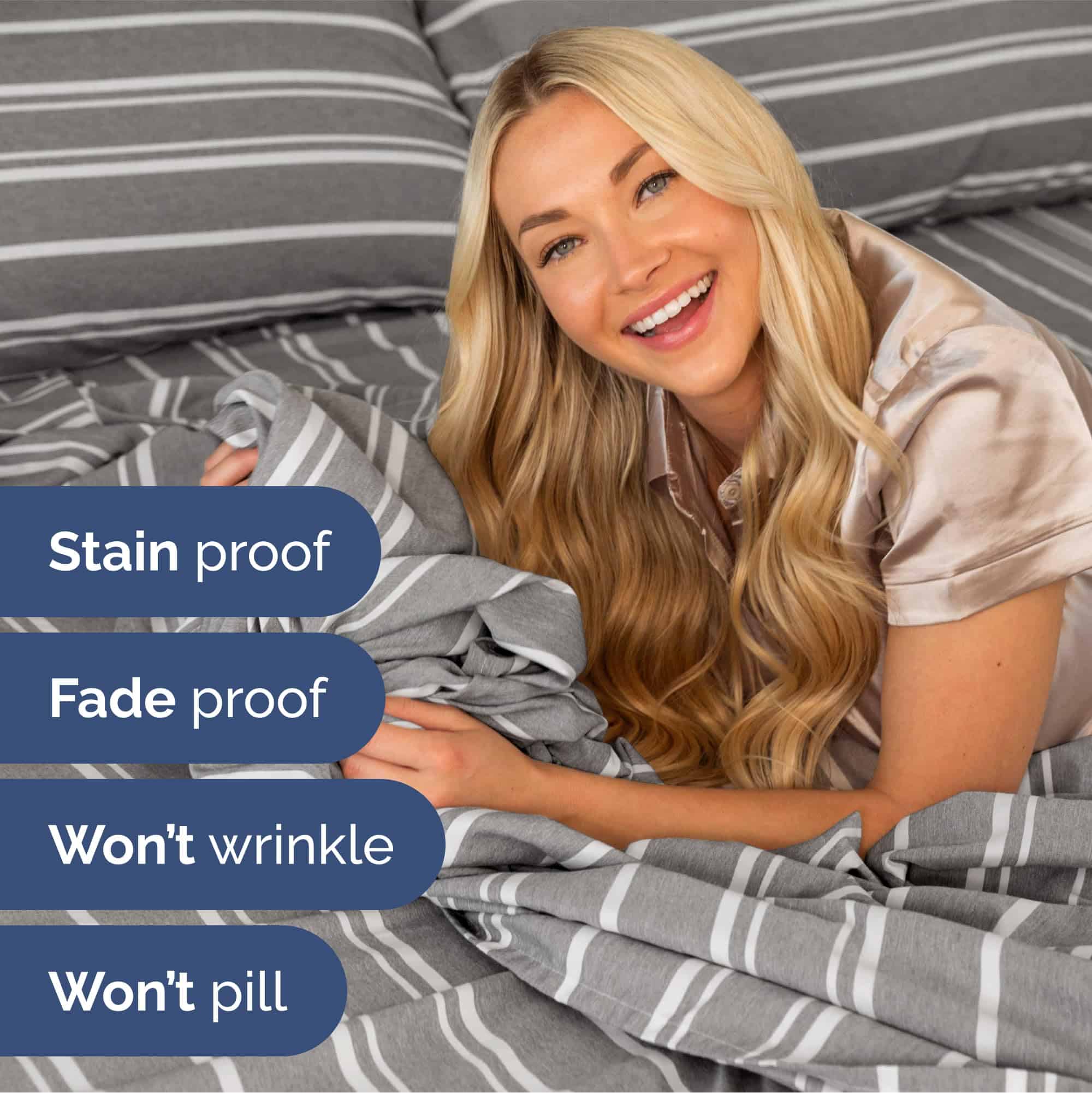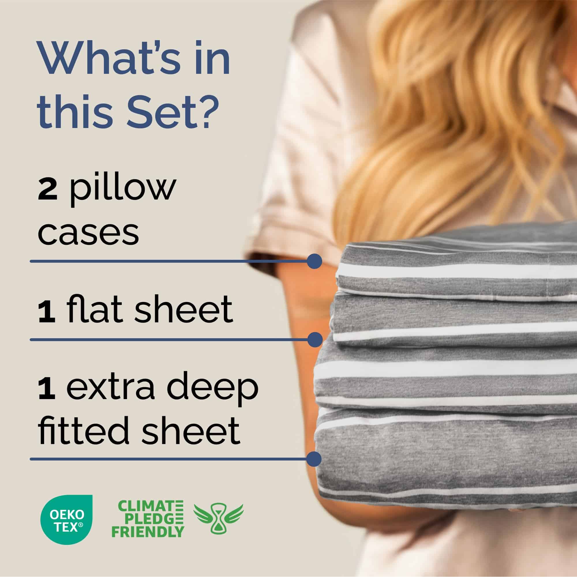 Juego de sábanas Extra Deep Pocket Cal King -Gris a rayas