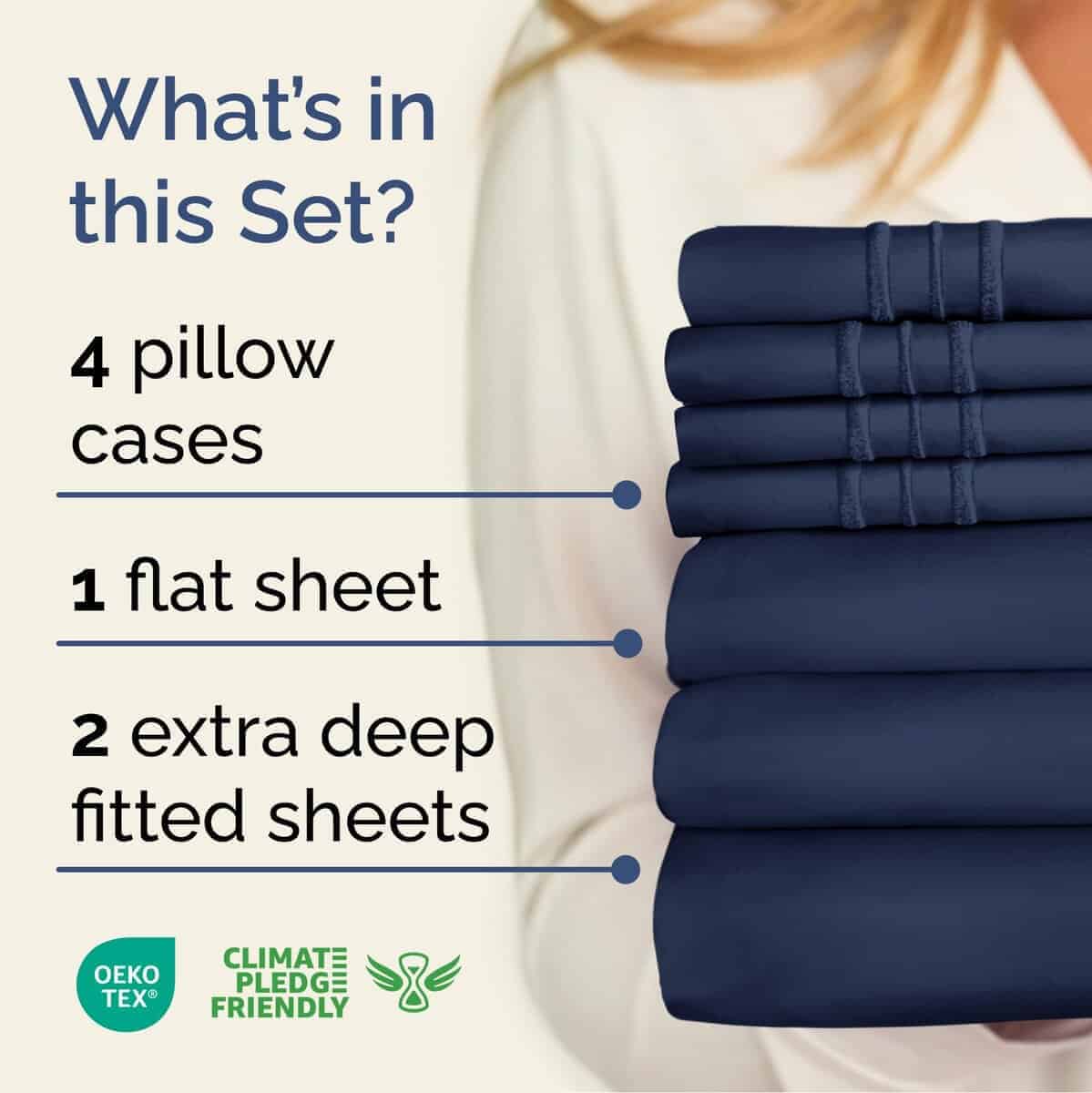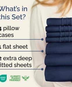Juego de sábanas Extra Deep Split King – 7 Piezas -Azul Mari