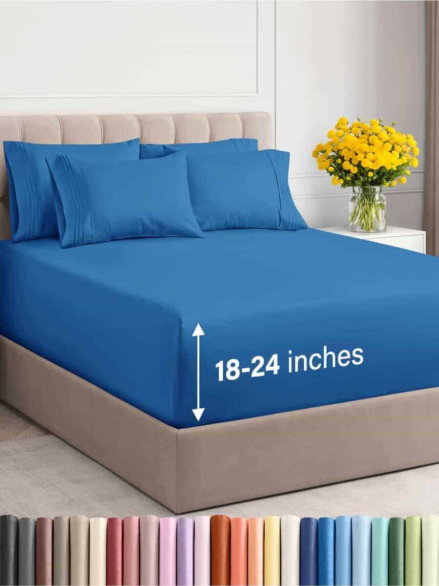 Juego de Sábanas Extra Profundas – 6 Piezas -Azul Real