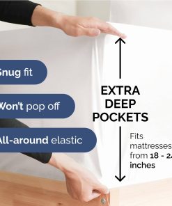 Juego de sábanas extra profundas de 6 piezas en tamaño completo, diseñadas para adaptarse a colchones con bolsillos extra profundos de 18, 20, 21, 22 y 24 pulgadas de profundidad. Las sábanas cuentan con un ajuste elástico alrededor de la sábana ajustable extra profunda para garantizar un ajuste perfecto en su colchón. El juego incluye 4 fundas de almohada con un hermoso diseño de bordado decorativo en cada una, todas con diseños de cierre. Perfectas para colchones con colchón topper de 3 o 4 pulgadas, colchonetas de espuma con memoria, grandes almohadillas de colchón, colchones con topper, colchonetas de espuma, colchonetas de espuma grandes, colchones con topper y espuma con memoria. Las sábanas de microfibra son suaves y ligeras, más suaves que las sábanas de algodón. La sábana encimera mide 85 pulgadas de ancho y 96 pulgadas de largo, la sábana ajustable mide 54 pulgadas de ancho y 75 pulgadas de largo con bolsillos de 21 pulgadas (elástico). Las cuatro fundas de almohada son extragrandes de 20 x 30 pulgadas.