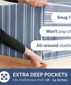 Juego de sábanas extra profundas para cama -Azul a rayas
