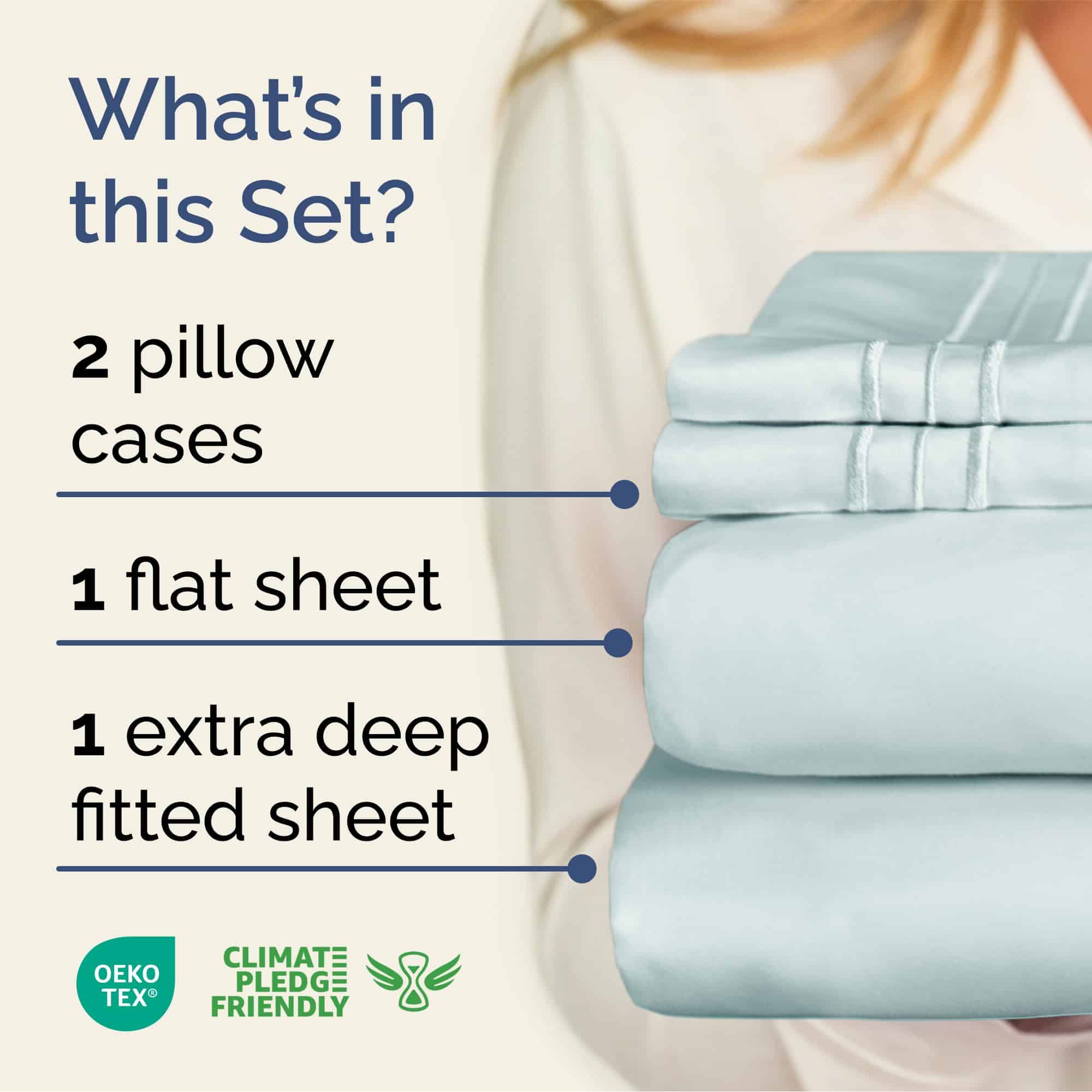 Juego de Sábanas Extra Profundas para Cama -Azul Hielo