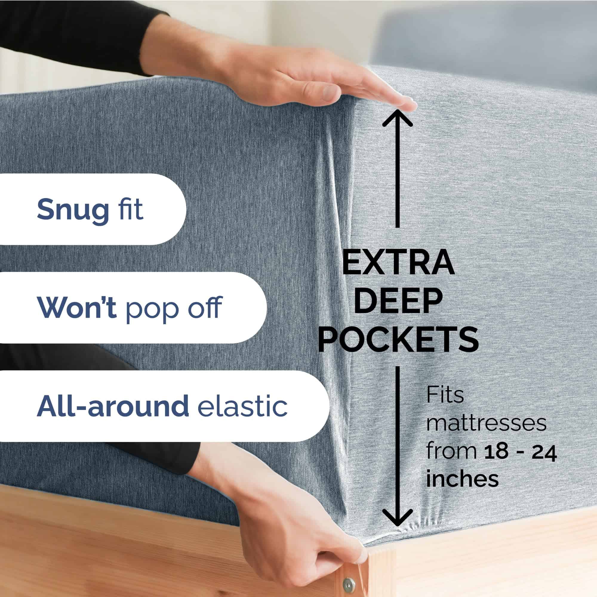 2. SÁBANAS INDIVIDUALES DE BOLSILLOS EXTRA PROFUNDOS / SÁBANAS AJUSTABLES INDIVIDUALES EXTRA PROFUNDAS: Estas sábanas son para colchones de bolsillos muy profundos. Se ajustan a cualquier colchón con bolsillos de 18, 20, 21, 22 y 24 pulgadas de profundidad. Hay un elástico elástico alrededor de la sábana ajustable extra profunda que se estira para ajustarse perfectamente a tu colchón. Perfecto para colchones extra altos y grandes. ¡Descansa tranquilo sabiendo que estas sábanas extragrandes se mantendrán bien sujetas y en su lugar!.