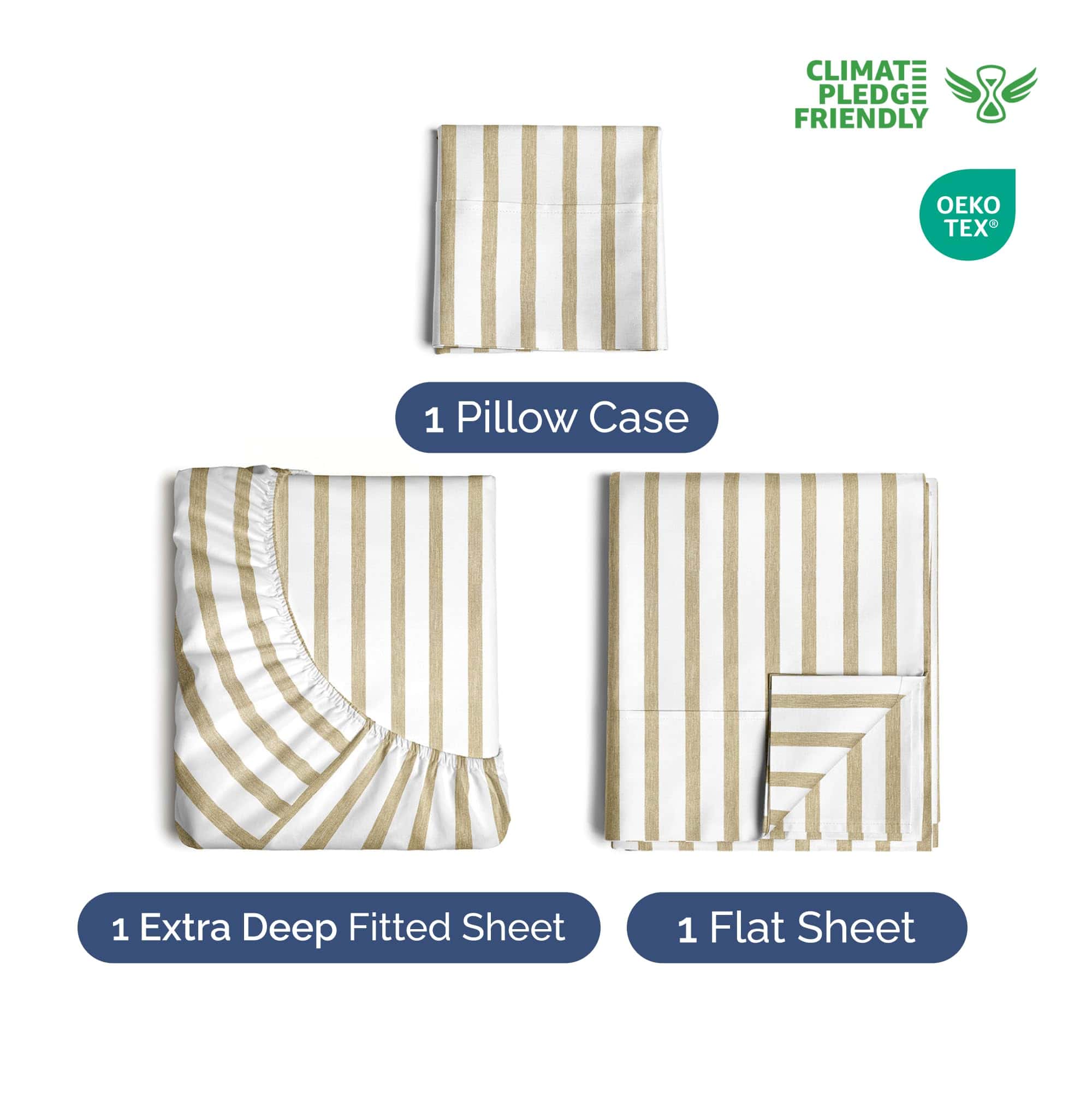 Juego de sábanas extra profundas para cama -Beige a rayas 2