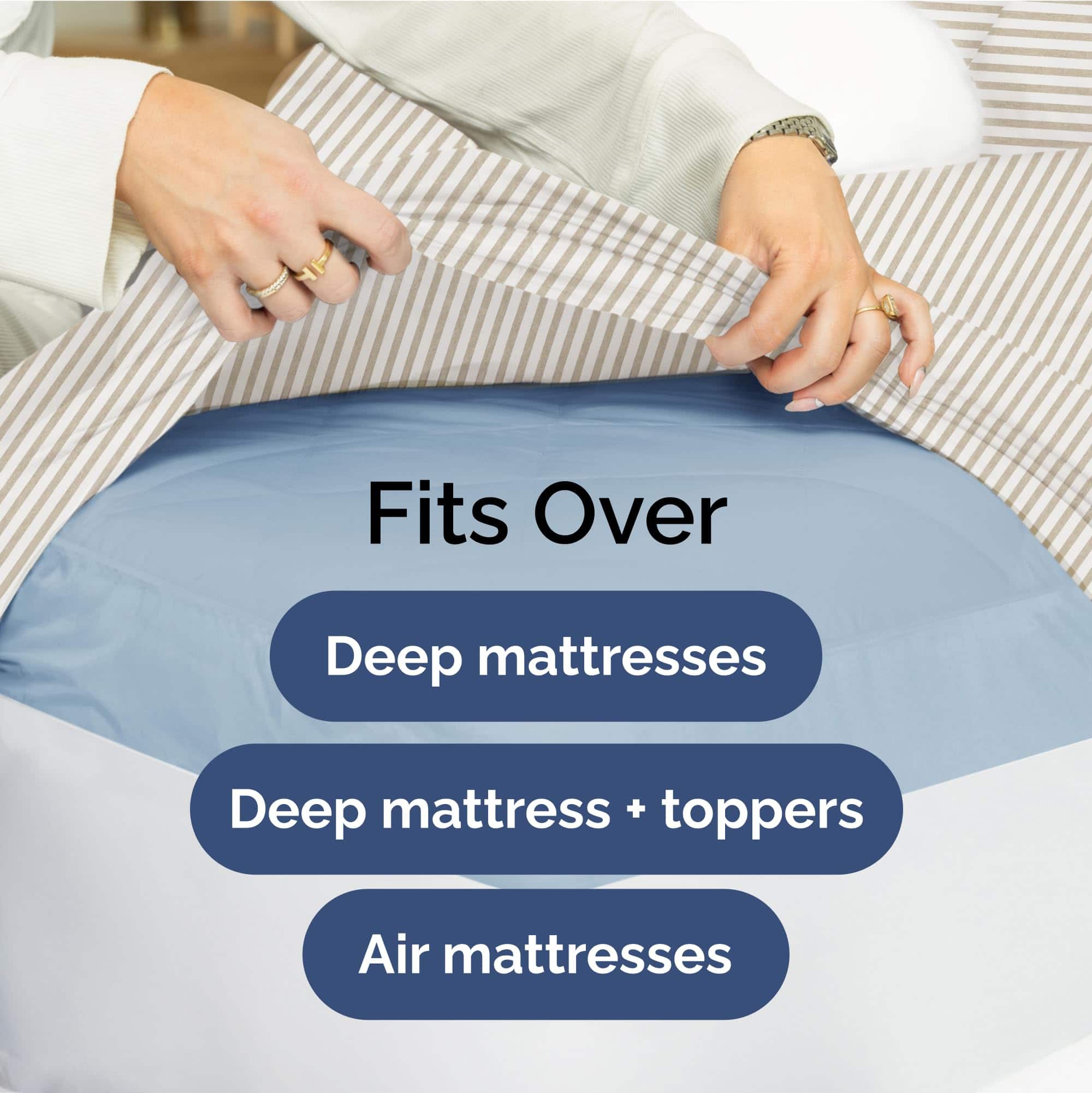 4. IDEAL PARA COLCHONES CON DOBLE TOPPER: Estas sábanas son perfectas para colchones con un topper de 3 o 4 pulgadas, toppers de espuma con memoria, grandes protectores de colchón, toppers de almohadilla, toppers de espuma grandes, colchones de almohadilla y colchones de espuma con memoria. Estas sábanas no se saldrán y se mantendrán en su lugar!.