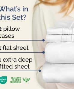 Este juego de sábanas extra profundas para cama individual está diseñado para proporcionarle un descanso cómodo y de calidad. Las sábanas están hechas con microfibra de la más alta calidad, lo que las hace increíblemente suaves al tacto. Con bolsillos extra profundos que se ajustan a los colchones más gruesos, estas sábanas garantizan un ajuste perfecto y seguro. Además, las fundas de almohada incluidas cuentan con un hermoso diseño de bordado decorativo, añadiendo un toque de elegancia a su dormitorio. Si busca sábanas que sean suaves, transpirables y duraderas, este juego de sábanas es la elección perfecta para usted. ¡Disfrute de noches de sueño reparador y confort gracias a estas sábanas de lujo!