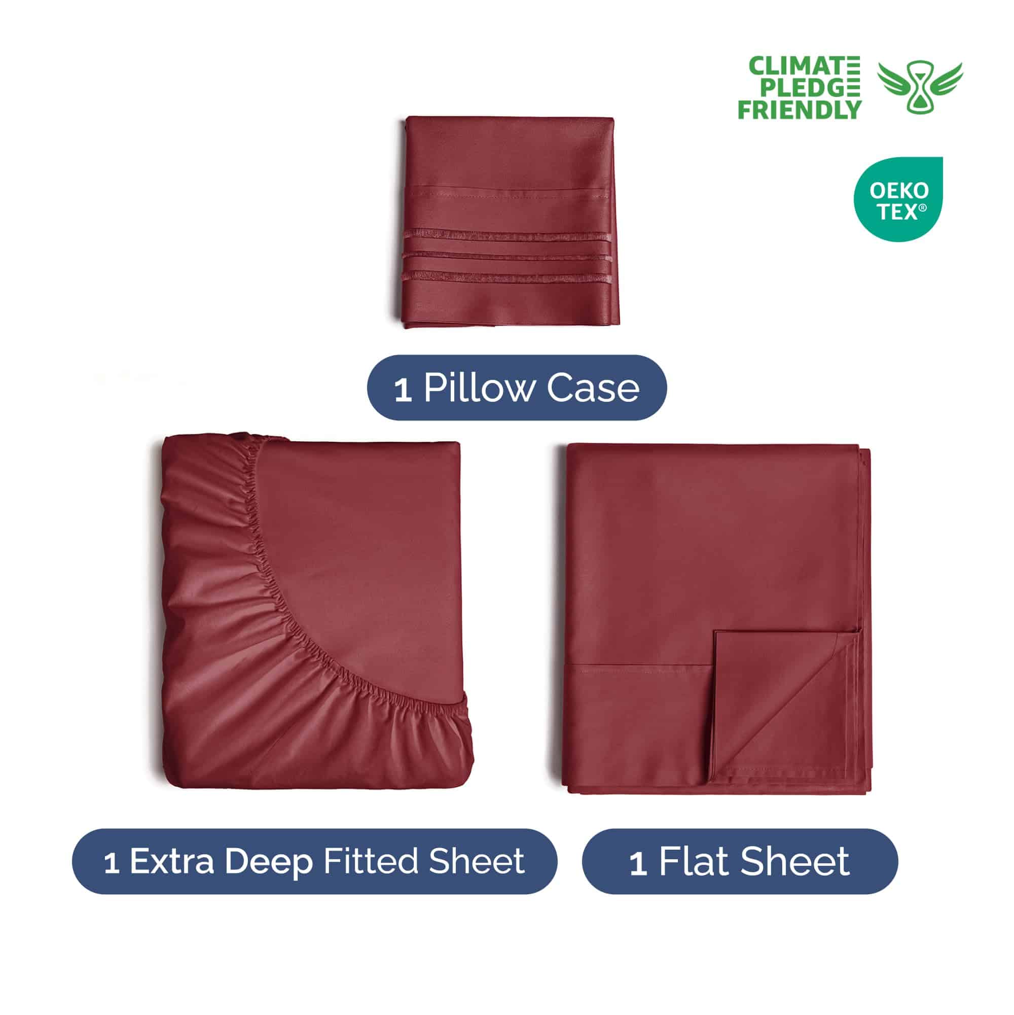 Juego de Sábanas Extra Profundas para Cama -Borgoña