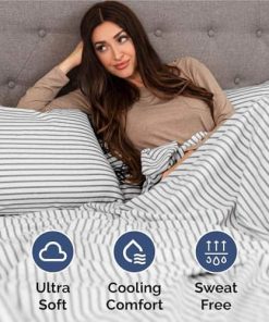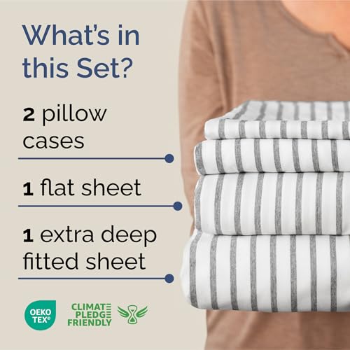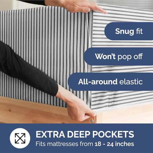 Juego de sábanas extra profundas para cama -Gris a Rayas