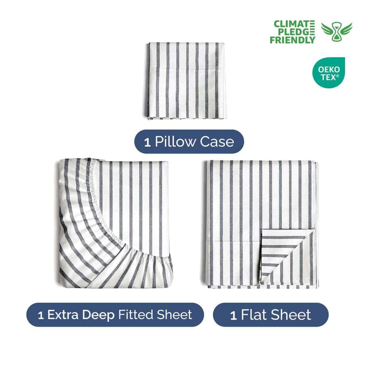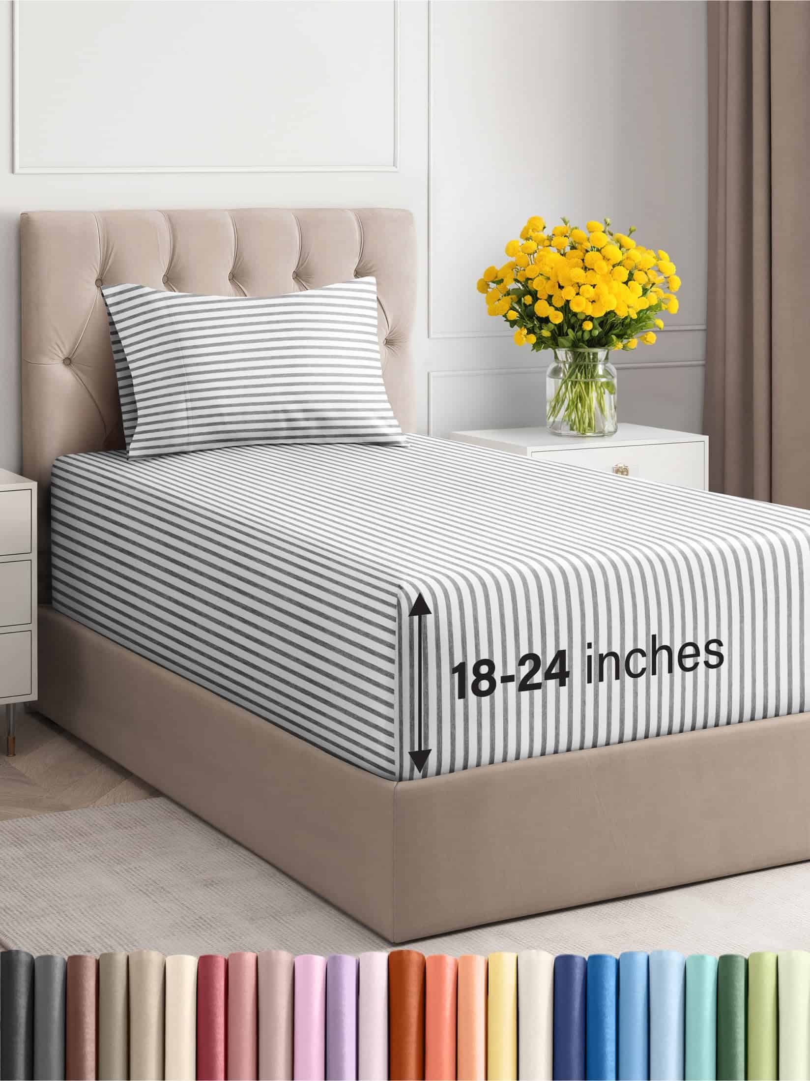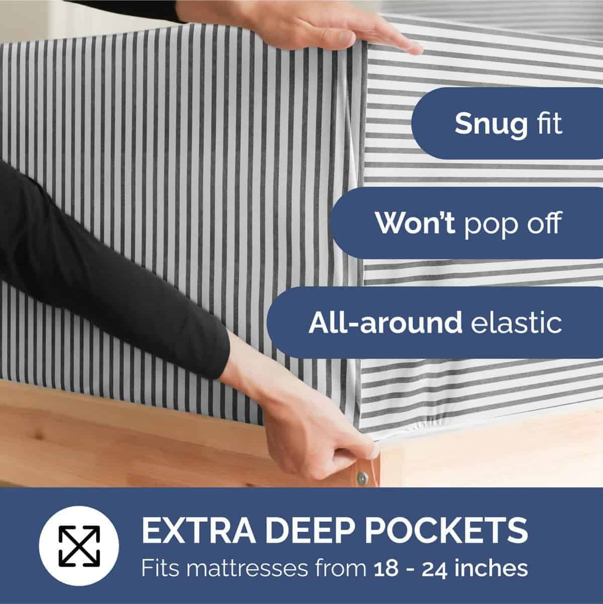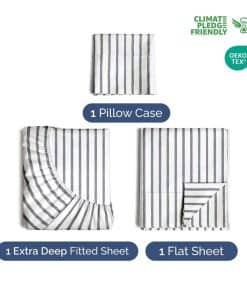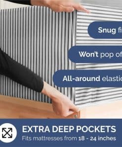 Juego de sábanas extra profundas para cama -Gris a rayas