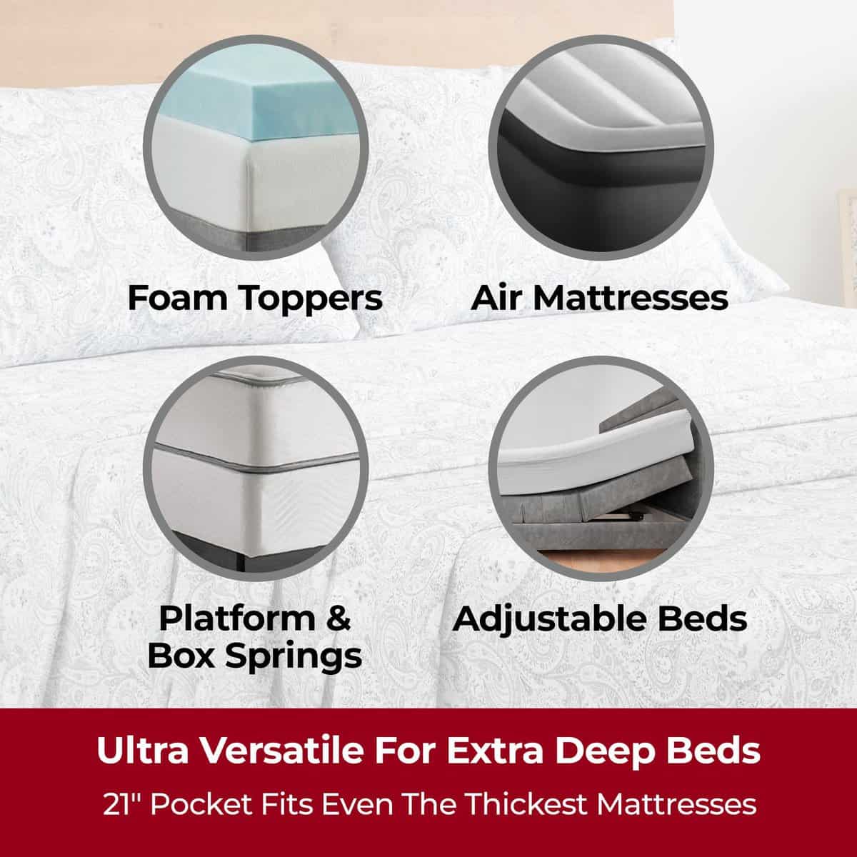 Juego de sábanas extra profundas para cama -Gris Paisley