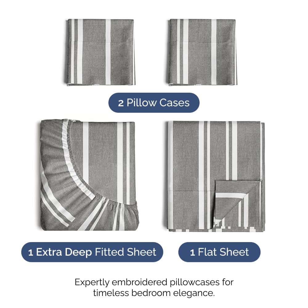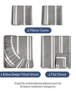 2. JUEGO DE SÁBANAS DE 4 PIEZAS: Este juego de sábanas viene con un total de 2 fundas de almohada, todas con un hermoso diseño decorativo de bordado en cada funda de almohada. Las fundas de almohada tienen diseños de cierre. Este juego de ropa de cama se adaptará perfectamente a su colchón extra grueso.