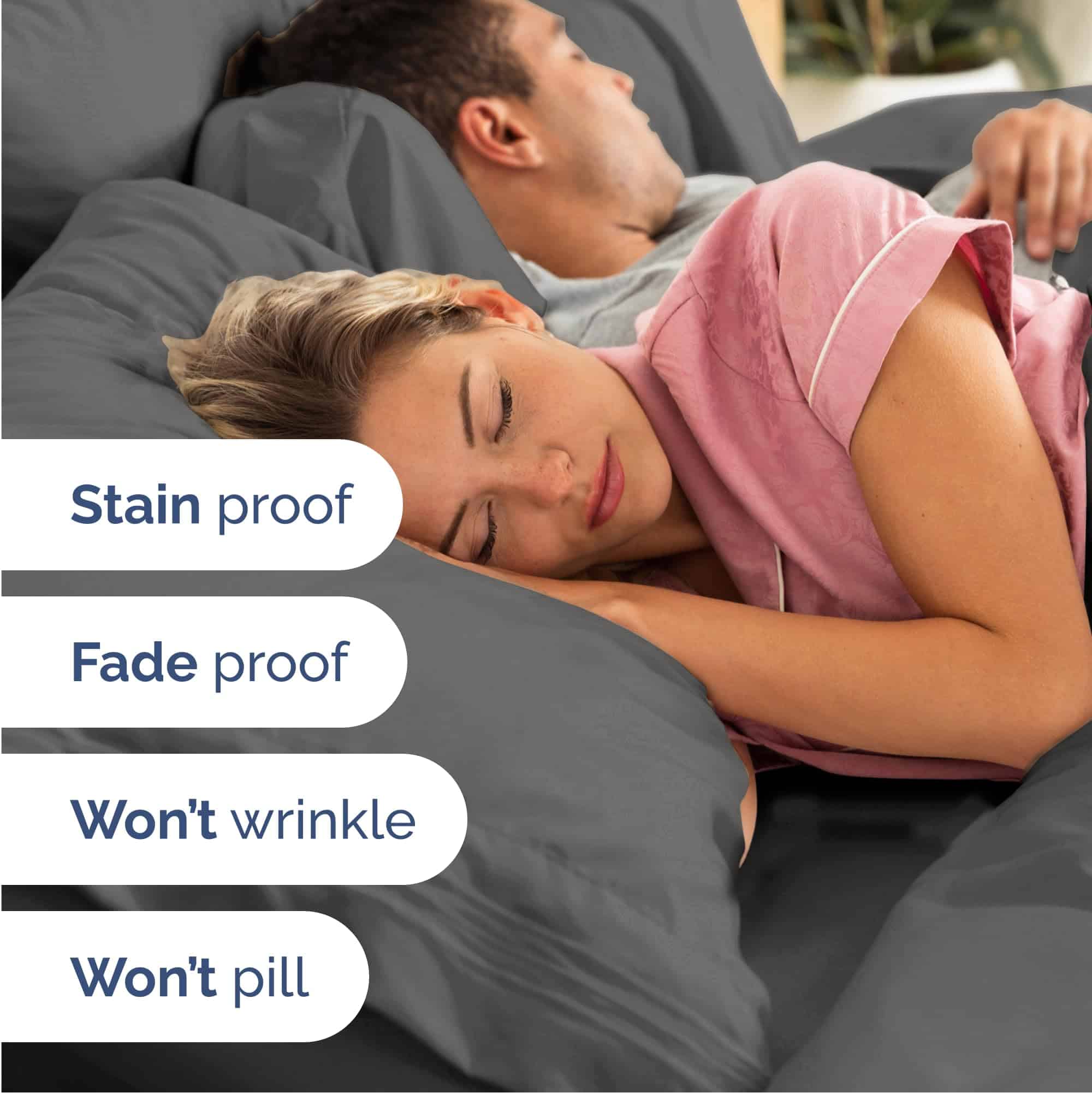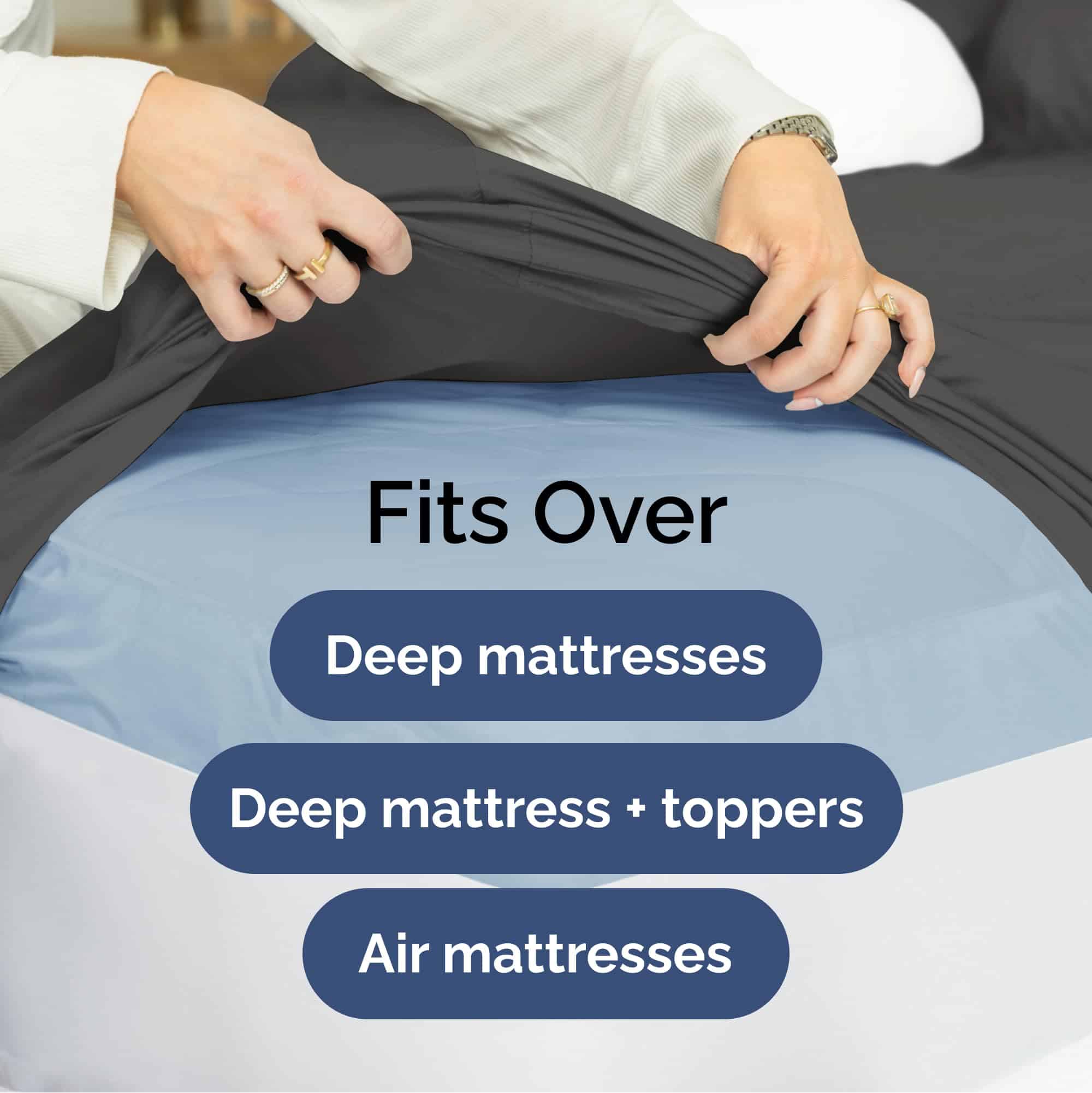 Estas sábanas de microfibra son las más suaves que hemos creado, con una sensación ligera y suave. Las dimensiones incluyen sábana ajustable de 39 pulgadas de ancho y 80 pulgadas de largo, con bolsillos de 21 pulgadas, y sábana plana de 113 pulgadas de ancho por 102 pulgadas de largo. Las cuatro fundas de almohada son de tamaño extra grande, de 20 x 40 pulgadas.