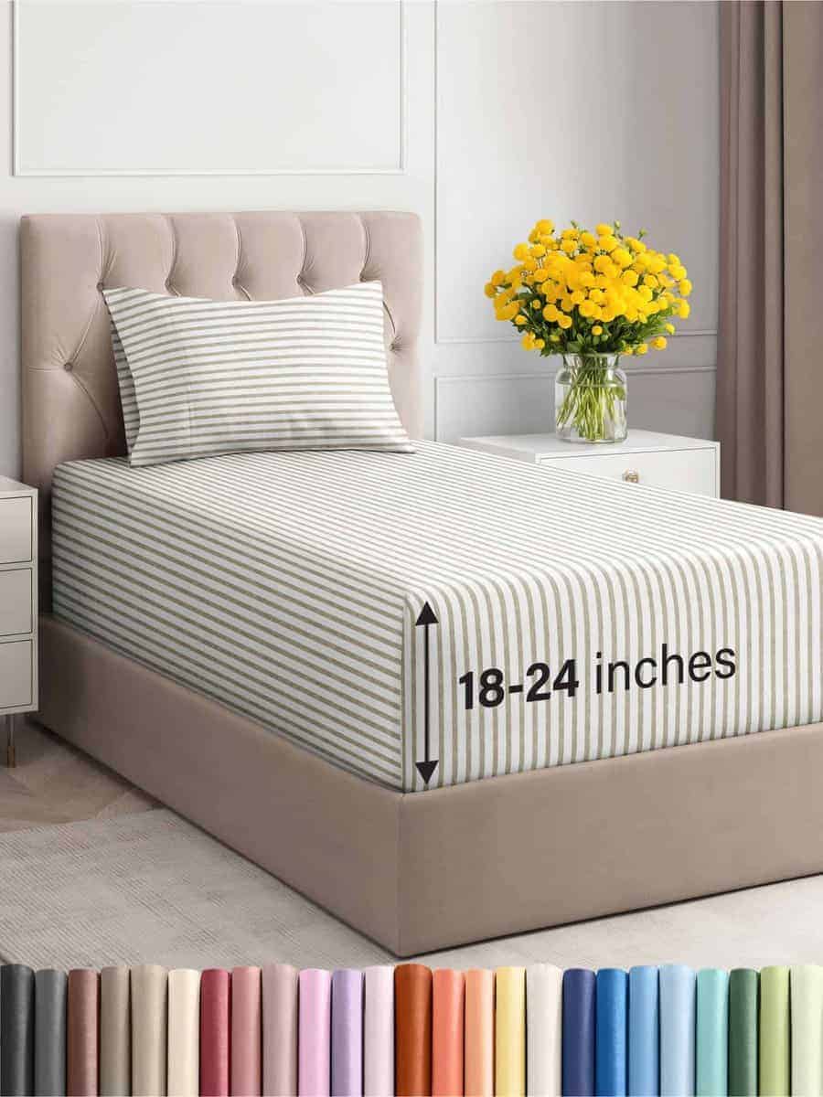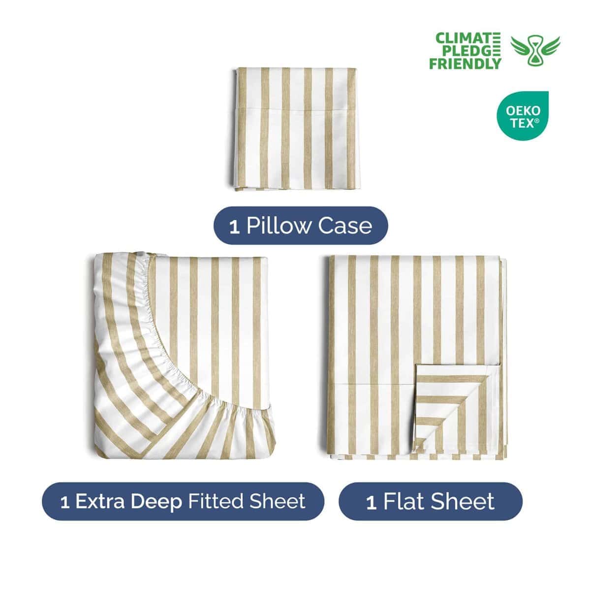 Juego de sábanas extra profundas Twin -Beige a rayas
