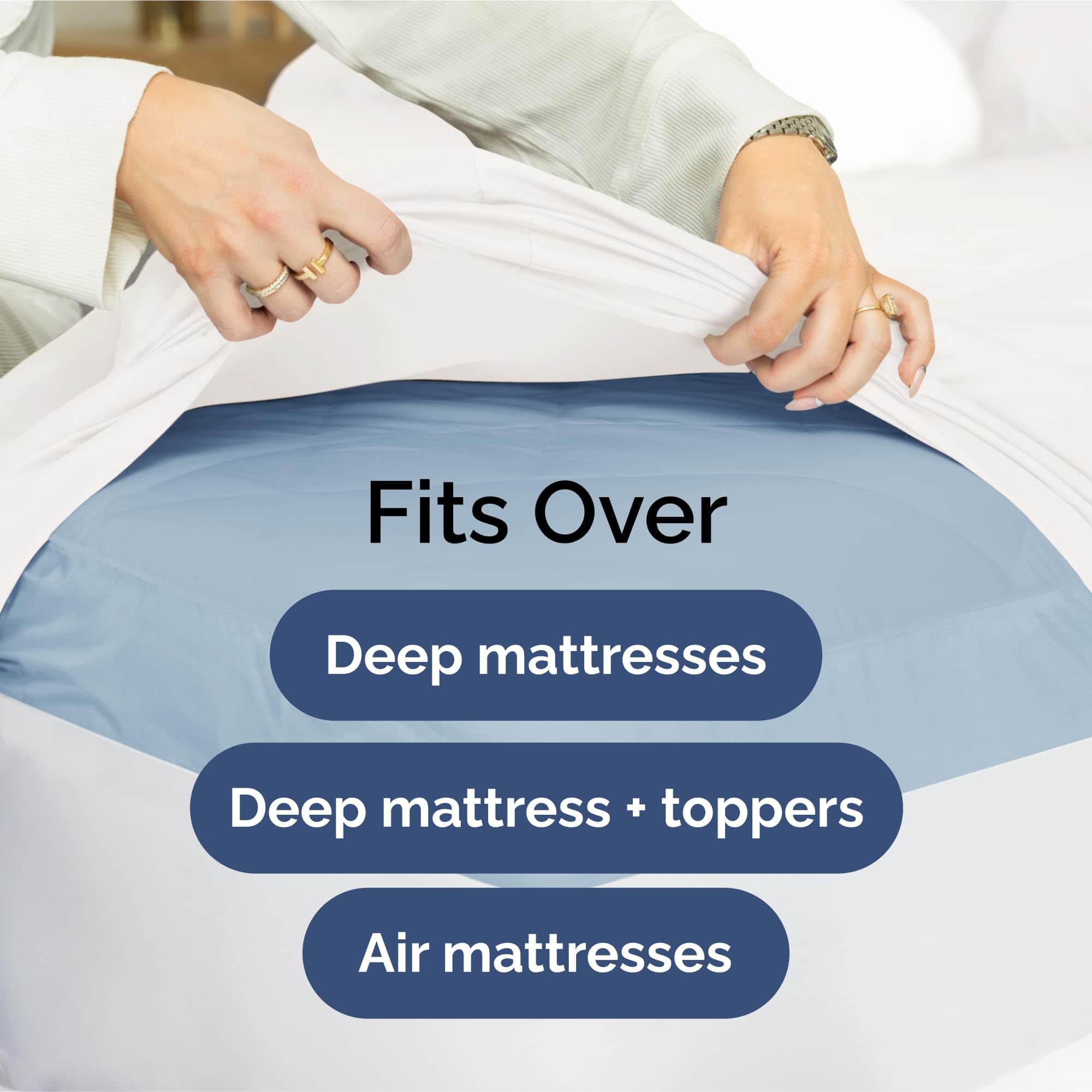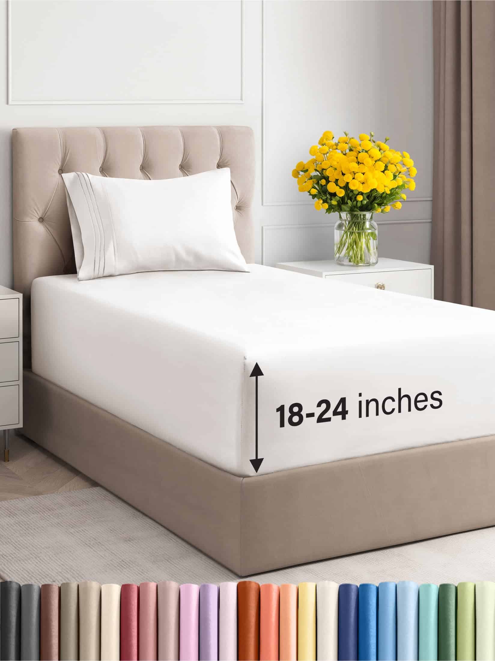 MICROFIBRA: Estas son las sábanas de microfibra más suaves que hemos creado. Súper suaves con una sensación ligera. No tan crujientes como el algodón. Si estás acostumbrado a las sábanas de algodón y nunca has probado las sábanas de microfibra, te recomendamos que al menos las pruebes. ¡Son aún más suaves que el algodón! SÁBANAS EXTRA PROFUNDAS / SÁBANAS AJUSTABLES EXTRA PROFUNDAS: Estas sábanas son para colchones muy profundos. Se adaptan a cualquier colchón con bolsillos de 18, 20, 21, 22 y 24 pulgadas de profundidad. Hay un elástico alrededor de la sábana ajustable extra profunda que se estira para ajustarse perfectamente al colchón. Perfecto para colchones extra altos y grandes. ¡Descansa tranquilo, estas sábanas extragrandes permanecerán ajustadas y en su lugar! IDEALES PARA COLCHONES DE DOBLE ALMOHADA: Estas sábanas son perfectas para colchones con un colchón topper de 3 o 4 pulgadas en la parte superior, colchones con topper de espuma de memoria, grandes almohadillas para colchones, colchones con pillowtops, toppers de espuma, grandes toppers de espuma, colchones con pillow top y memory foam. ¡Estas sábanas no se saldrán y permanecerán en su lugar!