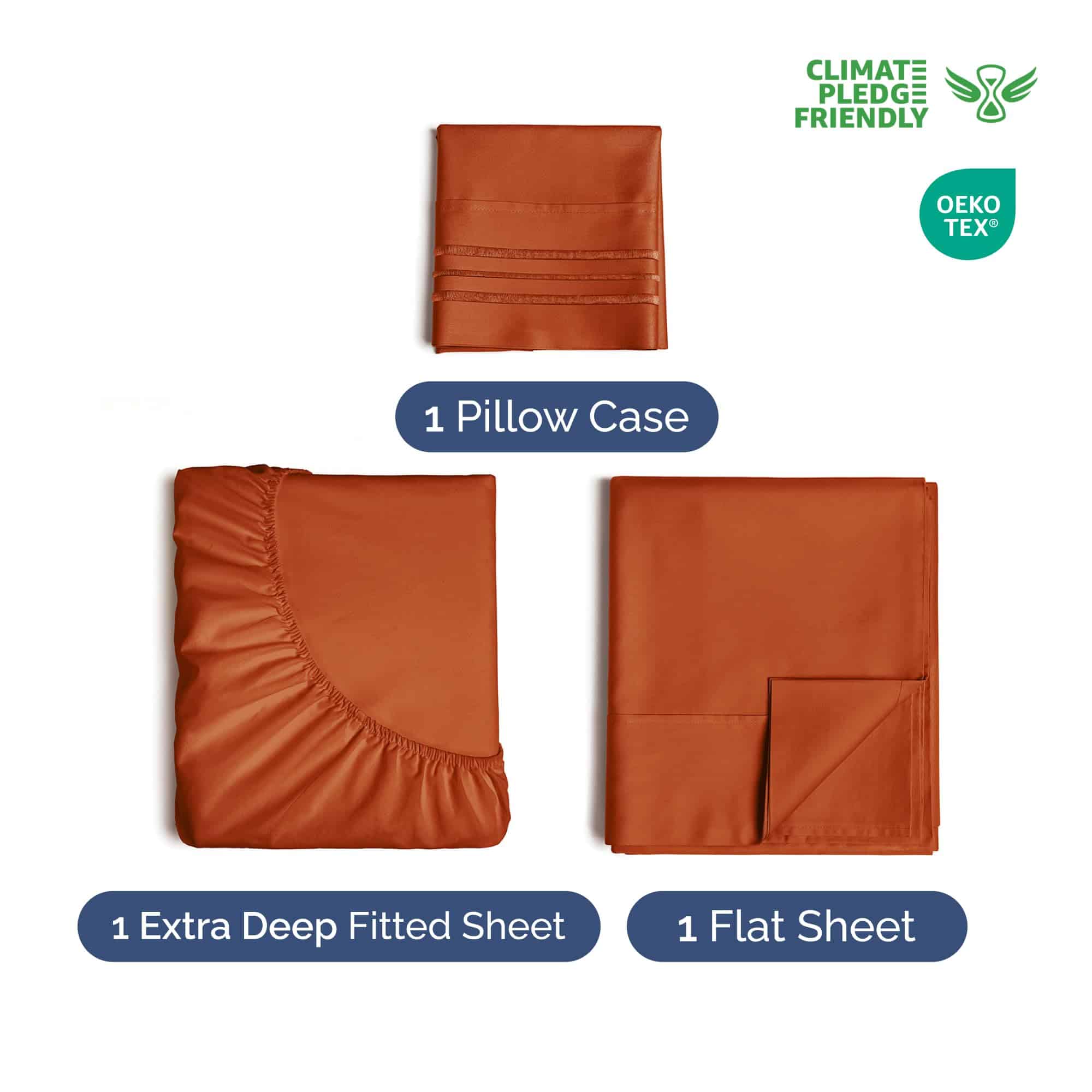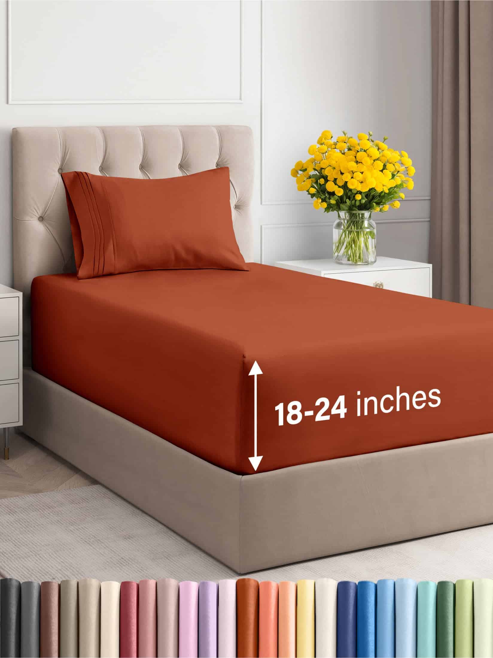 Juego de Sábanas Extra Profundas Twin -Terracota