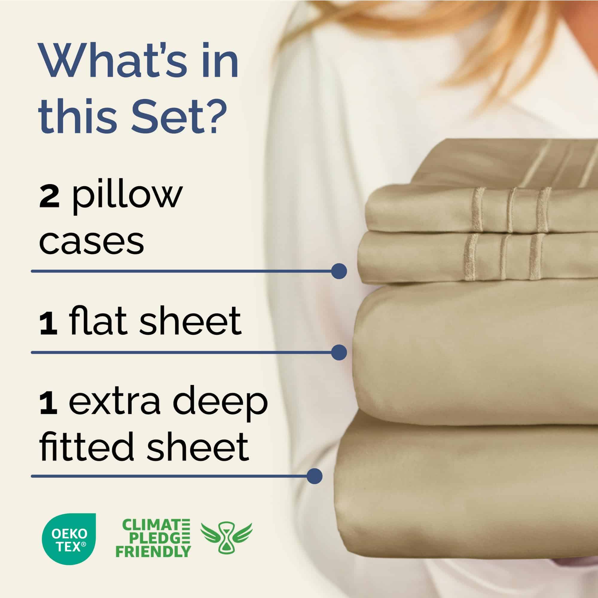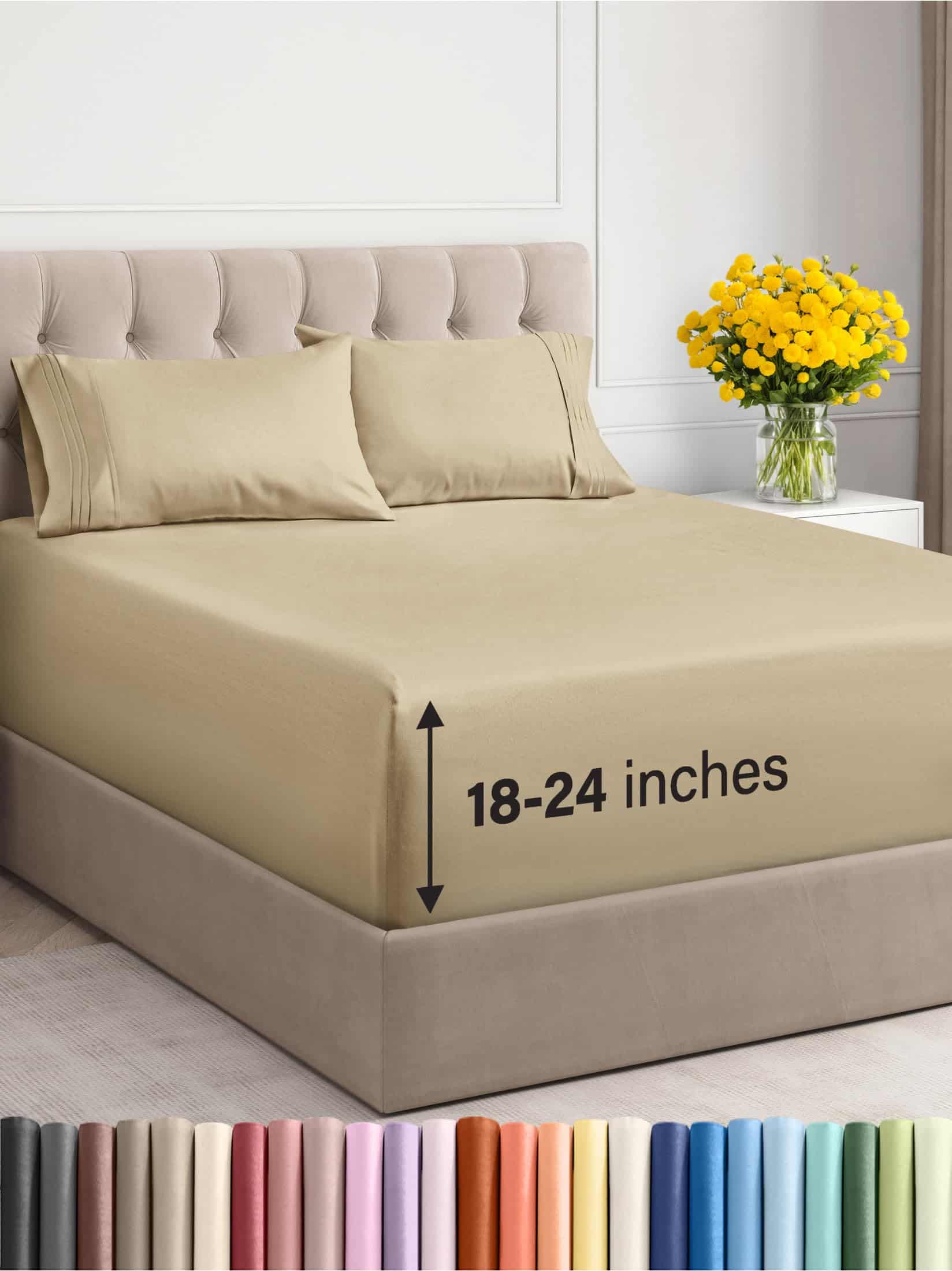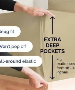 1. SÁBANAS TWIN XL DE BOLSILLOS EXTRA PROFUNDOS / SÁBANAS AJUSTABLES TWIN XL DE BOLSILLOS EXTRA PROFUNDOS: Estas sábanas están diseñadas para colchones con bolsillos muy profundos. Se ajustan a cualquier colchón con bolsillos de 18, 20, 21, 22 y 24 pulgadas de profundidad. Hay elástico que se estira alrededor de la sábana ajustable de bolsillos extra profundos que se ajusta perfectamente al colchón. Perfecto para colchones extra altos y grandes. ¡Estas sábanas extragrandes se mantendrán ajustadas y en su lugar!