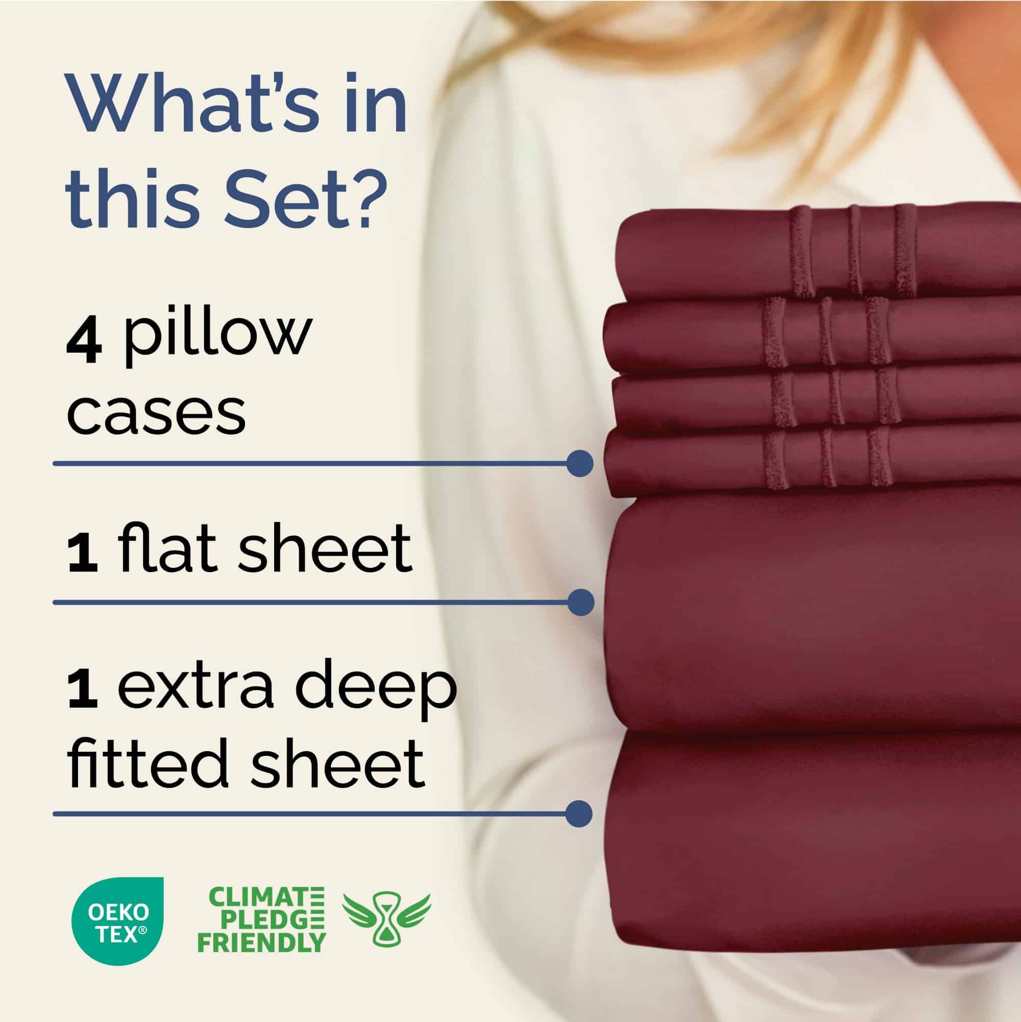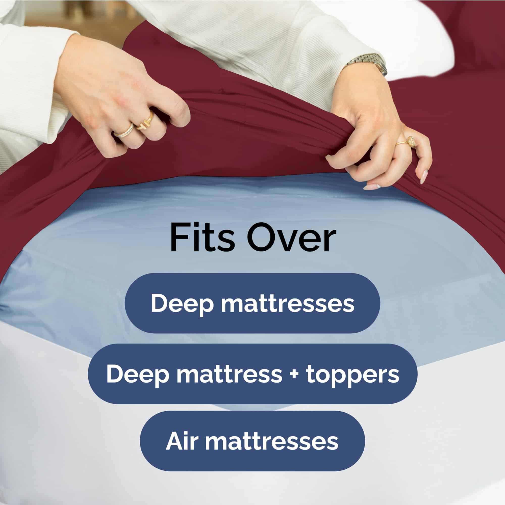 1. SÁBANAS EXTRA PROFUNDAS DE ALTO NIVEL / SÁBANAS ADAPTADAS EXTRA PROFUNDAS: Estas sábanas son para colchones muy profundos. Se ajustan a cualquier colchón con bolsillos de 18, 20, 21, 22 y 24 pulgadas de profundidad. Hay elasticidad estirable alrededor de la sábana ajustada extra profunda, que se estira para ajustarse perfectamente a su colchón. Perfectas para colchones extra altos y grandes. ¡Tenga la seguridad de que estas sábanas extragrandes se quedarán apretadas y en su lugar!
