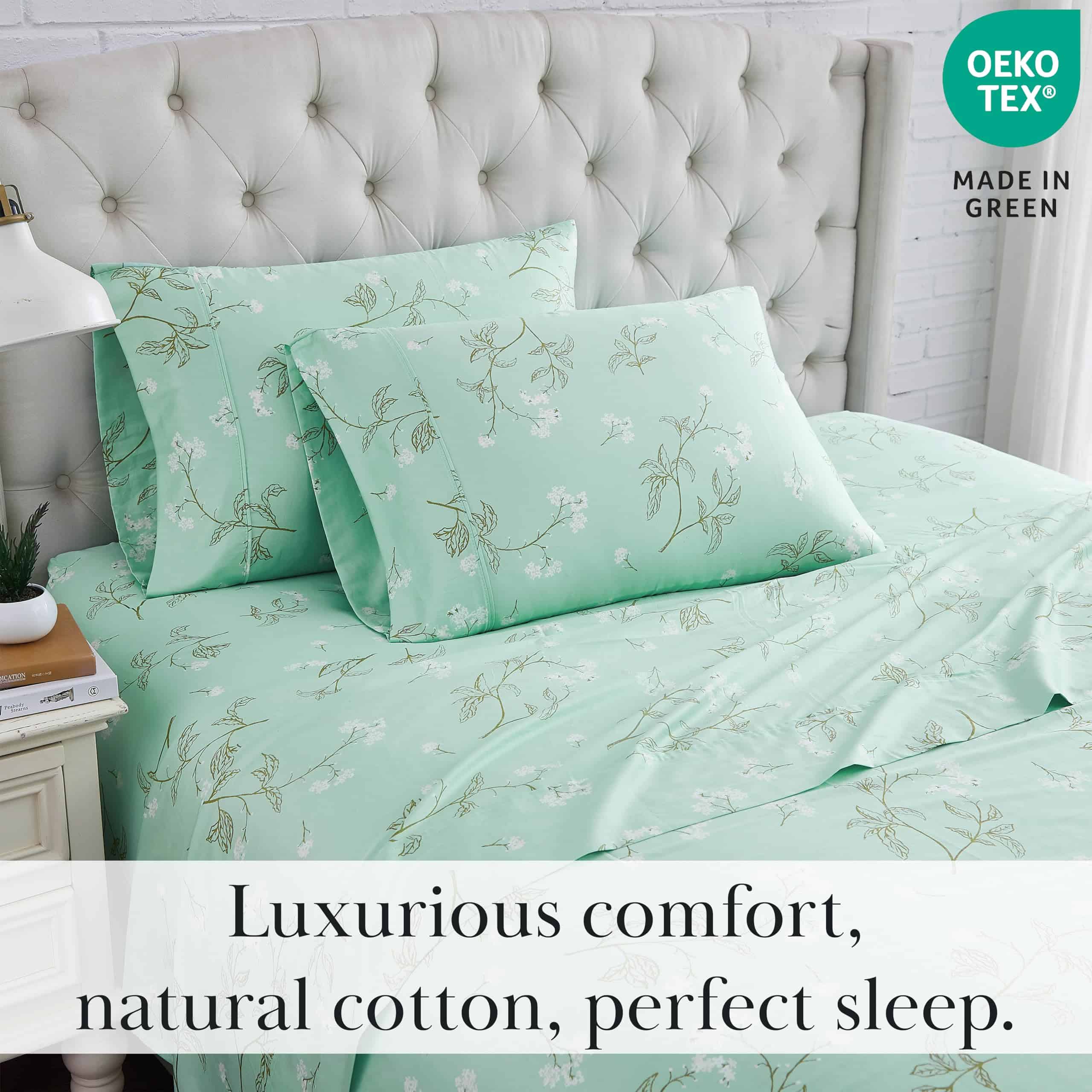 Actualice su dormitorio con este juego de sábanas de alta calidad sin gastar mucho dinero. Nuestros juegos de sábanas de 300 hilos cuentan con bolsillos extra profundos y están hechos con nuestro mejor algodón de 300 hilos en tejido satén. Son transpirables, livianos y extremadamente suaves, con un acabado liso y brillante. Resistente a la decoloración y el apelotonamiento, las sábanas se mantienen suaves con cada lavado. Empresa familiar con sede en Las Vegas, dedicada a productos de calidad y servicio al cliente excepcional.