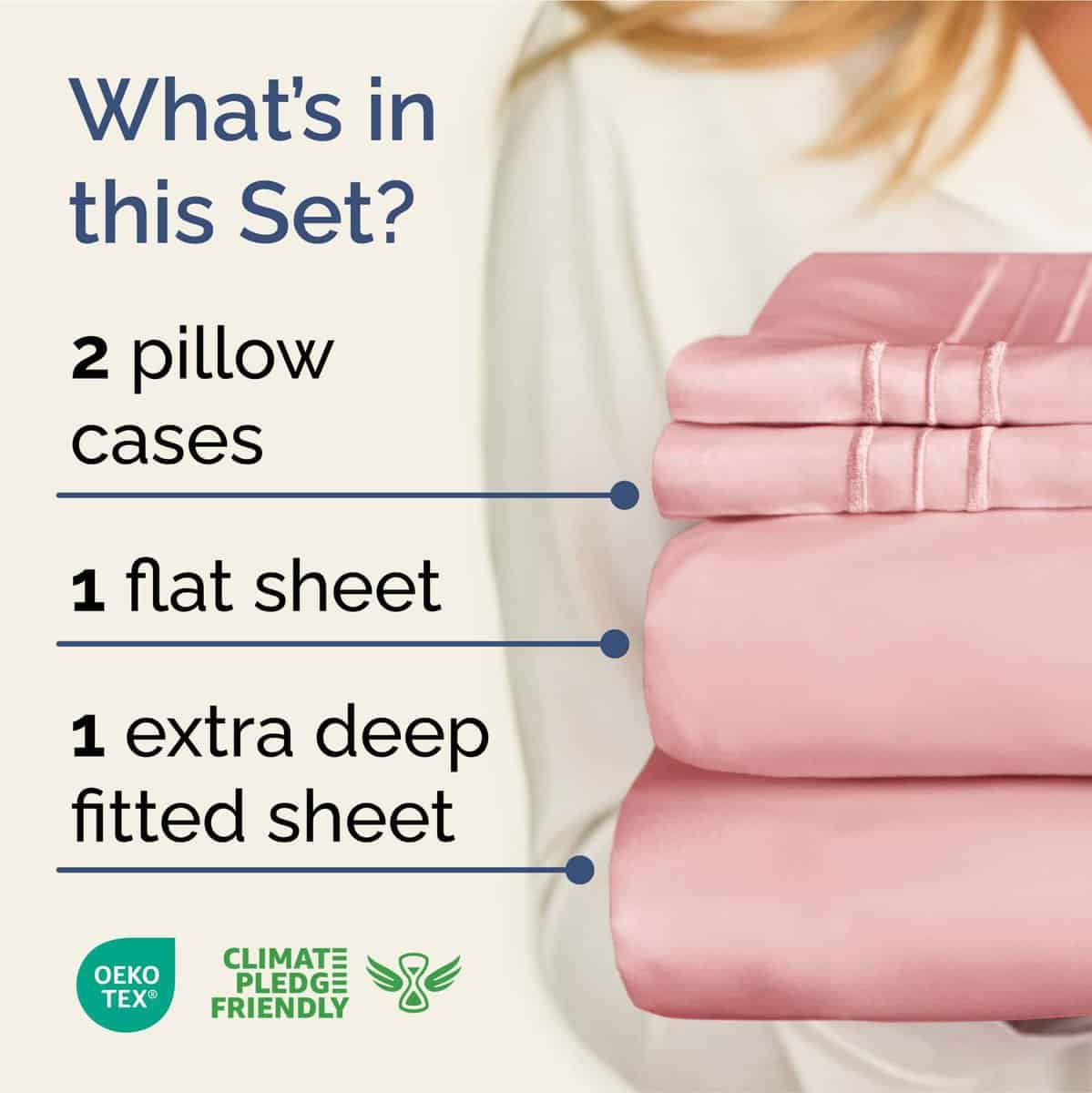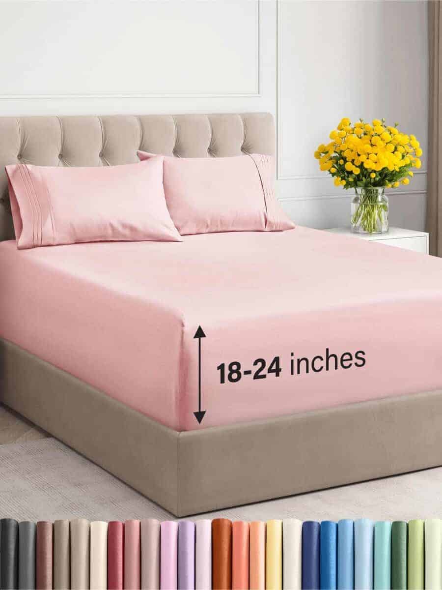 2. SÁBANAS CALIFORNIA KING EXTRA PROFUNDAS / SÁBANAS ADAPTABLES CALIFORNIA KING EXTRA PROFUNDAS: Estas sábanas son para colchones muy profundos. Se adaptan a cualquier colchón con bolsillos de 18, 20, 21, 22 y 24 pulgadas de profundidad. Hay un elástico elástico alrededor de la sábana ajustable extra profunda que se estira para ajustarse perfectamente a su colchón. Perfecto para colchones extra altos y grandes. ¡Tenga la certeza de que estas sábanas extragrandes se mantendrán ajustadas y en su lugar!