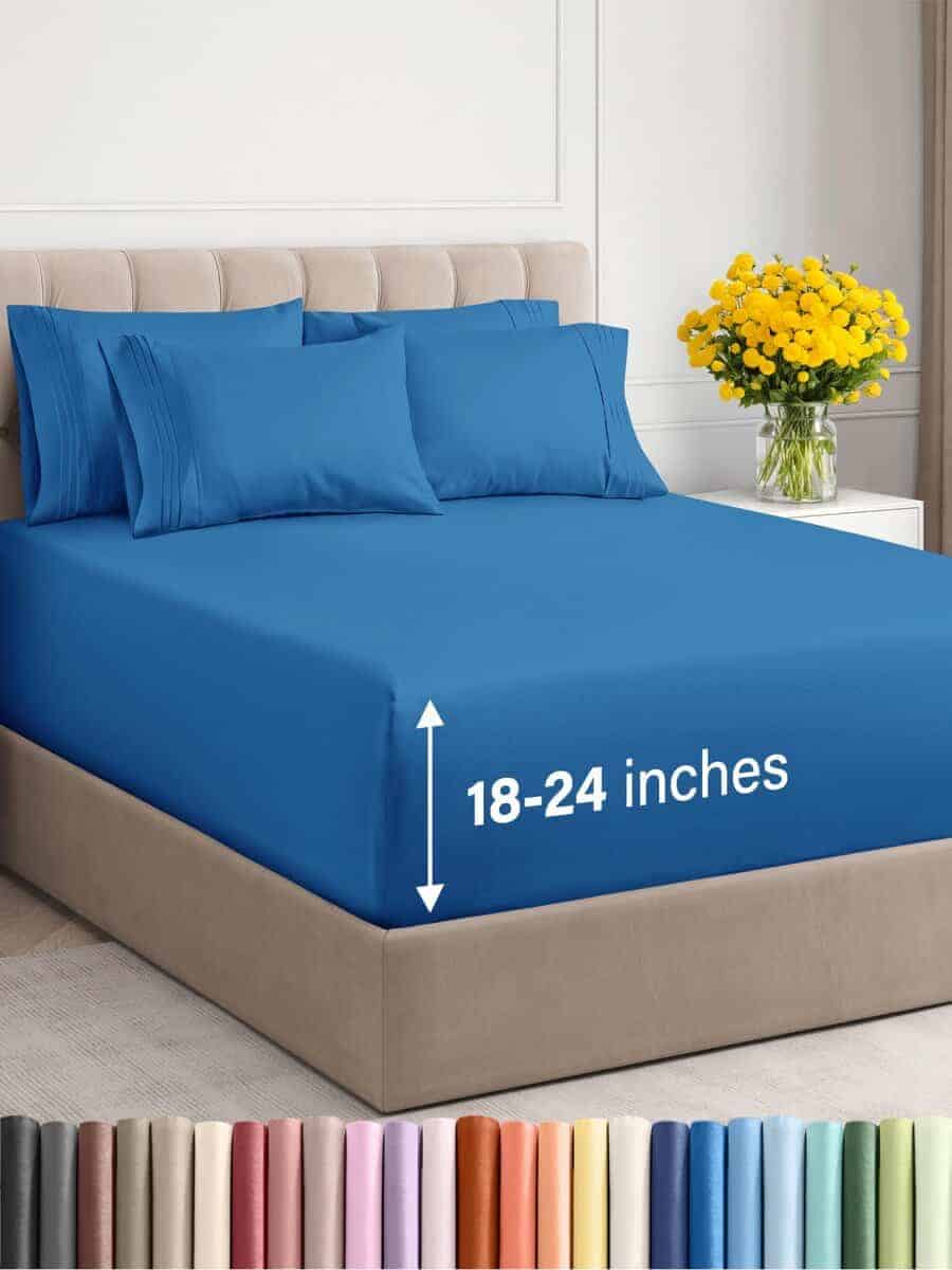 Este juego de sábanas viene con 4 fundas de almohada en total, todas con un hermoso diseño de bordado decorativo en cada funda de almohada. Las fundas de almohada tienen diseños de cierre. Este conjunto de ropa de cama se adaptará perfectamente a su colchón extra grueso. Estas sábanas son perfectas para colchones con un topper de 3 o 4 pulgadas, toppers de espuma viscoelástica, grandes almohadillas para colchones, colchones con topper, toppers de espuma grandes, colchones con topper y espuma viscoelástica.