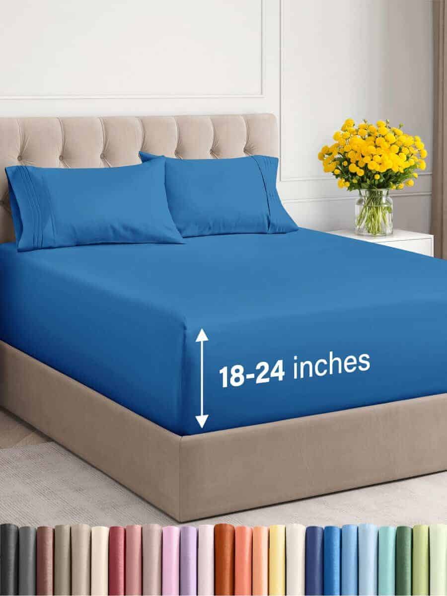 Juego de sábanas extra profundo para cama -Azul Real