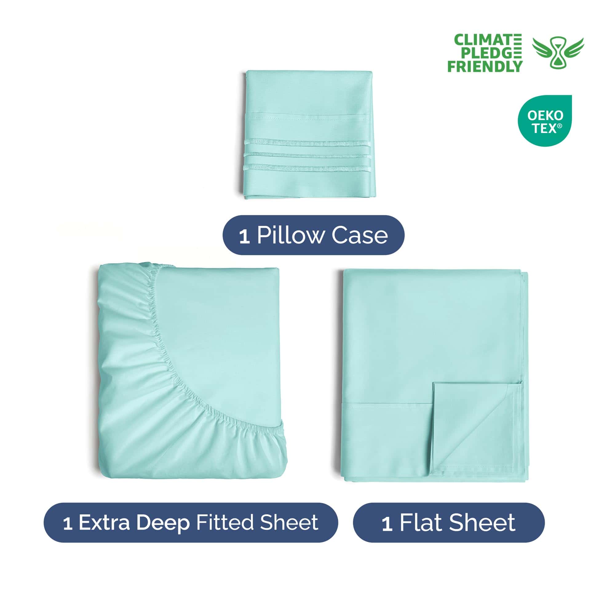 Con dimensiones de sábana plana de 71 pulgadas de ancho y 102 pulgadas de largo, sábana ajustada de 39 pulgadas de ancho y 80 pulgadas de largo con bolsillos de 21 pulgadas (con elástico para estirarse) y funda de almohada extragrande de 20 x 30 pulgadas, este juego de sábanas es el complemento perfecto para su colchón Twin XL. Disfrute de la suavidad y el confort de estas sábanas de lujo de hotel en su hogar.
