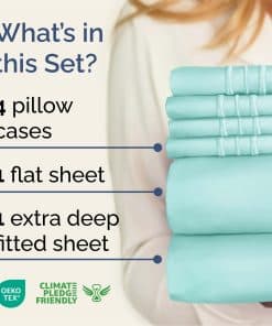 JUEGO DE SÁBANAS DE 6 PIEZAS: Este juego de sábanas incluye un total de 4 fundas de almohada, todas con un hermoso diseño de bordado decorativo en cada funda de almohada. Las fundas de almohada tienen diseños de cierre. Este juego de ropa de cama se adaptará perfectamente a su colchón extra grueso. IDEAL PARA COLCHONES DE DOBLE COLCHÓN: Estas sábanas son perfectas para colchones con una cubierta de 3 o 4 pulgadas en la parte superior, colchones con cubiertas de espuma con memoria, grandes almohadillas para colchón, colchones con cubierta de almohada, colchones con tapa de espuma, almohadillas de espuma grandes, colchones de almohadas y espuma con memoria. Estas sábanas no se saldrán. MICROFIBRA: Este es el tipo de sábanas de microfibra más suaves que hemos creado. Súper suave con una sensación liviana. No crujiente como el algodón. Si está acostumbrado a las sábanas de algodón y nunca ha probado las sábanas de microfibra, le recomendamos que las pruebe. Son aún más suaves que el algodón. DIMENSIONES Y TAMAÑOS: Sábana plana de 117 pulgadas de ancho y 102 pulgadas de largo. Sábana ajustable de 72 pulgadas de ancho y 84 pulgadas de largo con bolsillos de 21 pulgadas (tiene elástico para que pueda estirarse). Las cuatro fundas de almohada son extragrandes de 20 x 40 pulgadas.
