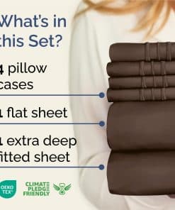 Estas sábanas son ideales para colchones muy profundos con bolsillos de 18, 20, 21, 22 y 24 pulgadas de profundidad. El elástico estirable alrededor de la sábana ajustable extra profunda se estira para un ajuste perfecto alrededor de su colchón. Perfecto para colchones extra altos y grandes. Descanse tranquilo sabiendo que estas sábanas extragrandes se mantendrán apretadas y en su lugar. Este juego de sábanas viene con 4 fundas de almohada en total, todas con un hermoso diseño de bordado decorativo en cada funda de almohada. Las fundas de almohada tienen diseños de cierre. Este juego de ropa de cama se adaptará perfectamente a su colchón extra grueso. Estas son las sábanas de microfibra más suaves que hemos creado. Súper suaves con una sensación ligera. No crujientes como el algodón. Si está acostumbrado a las sábanas de algodón y nunca ha probado sábanas de microfibra, le recomendamos que las pruebe. ¡Son incluso más suaves que el algodón! Las dimensiones son: Sábana encimera de 111 pulgadas de ancho y 102 pulgadas de largo. Sábana ajustable de 78 pulgadas de ancho y 80 pulgadas de largo con bolsillos de 21 pulgadas (elástica para mayor flexibilidad). Las cuatro fundas de almohada son extragrandes de 20 x 40 pulgadas.