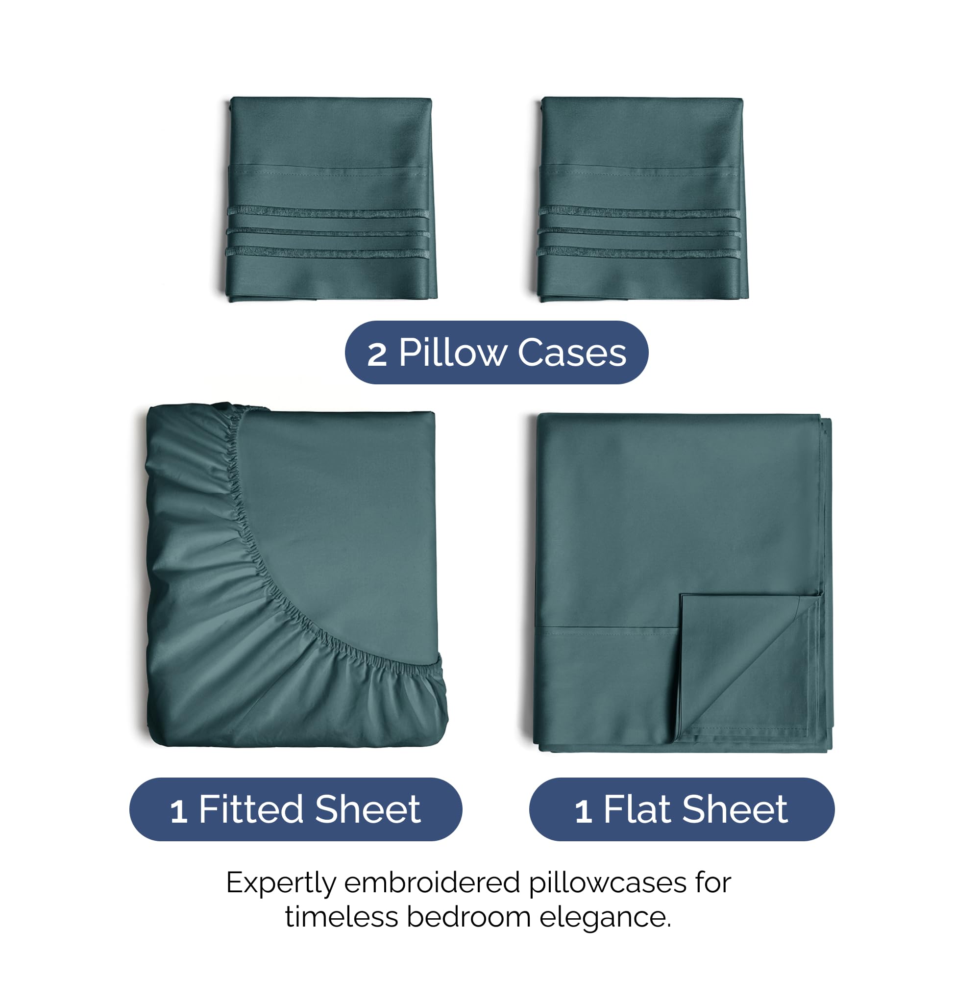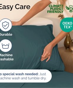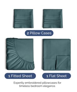 Juego de sábanas tamaño Cal King de 4 piezas, que incluye 2 fundas de almohada, una sábana plana y una sábana ajustable. La sábana plana tiene unas medidas de 108 pulgadas de ancho por 102 pulgadas de alto, mientras que la sábana ajustable es de 84 pulgadas de ancho por 72 pulgadas de alto. Además, se incluyen 2 fundas de almohada de 40 pulgadas de ancho por 20 pulgadas de alto. Estas sábanas tienen bolsillos profundos y son de fácil ajuste, adaptándose a colchones de hasta aproximadamente 16 pulgadas de profundidad. Son extremadamente suaves, transpirables y frescas al tacto, ofreciendo una sensación de lujo a la hora de dormir. Están confeccionadas con microfibra cepillada de la más alta calidad, lo que las hace ligeras y suaves al mismo tiempo. Este juego de sábanas es ideal para cualquier habitación de la casa, ya sea el dormitorio, la habitación de invitados, un RV o una casa de vacaciones. También son una excelente idea de regalo para cualquier persona que aprecie la comodidad y la suavidad en sus sábanas.