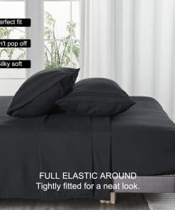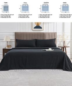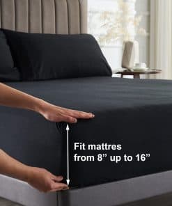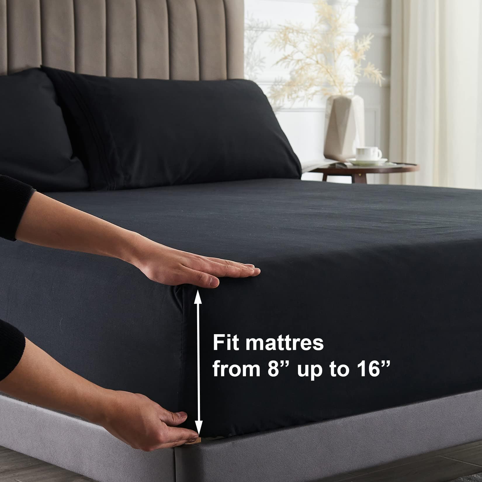 3. Fácil de cuidar: Las sábanas se pueden lavar a máquina en agua fría, no blanquear, secar rápidamente en el rodillo, y planchar a temperatura media, ahorrando así su tiempo y energía. Viene con un bolsillo profundo (hasta 16 pulgadas, alrededor de 40.6 cm) para un ajuste seguro, que no se encogerá ni se moverá en medio de la noche, y mantendrá suave, cómodo y sin arrugas.