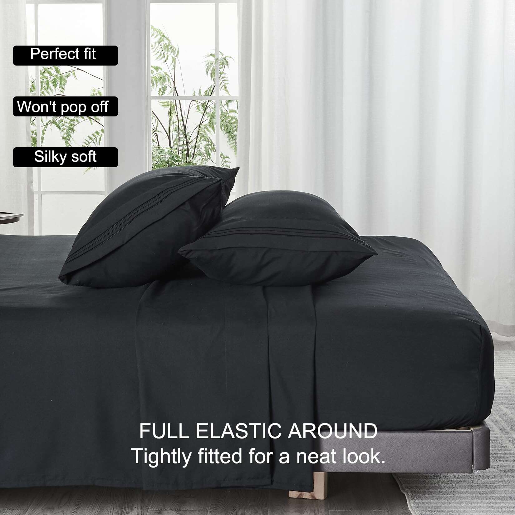 1. Microfibra cepillada de alta calidad: El lujoso juego de sábanas de cuatro piezas de Wodfamy está hecho de poliéster microfibra doble cepillado al 100%. La sábana ajustable totalmente elástica con banda elástica duradera puede cubrir el borde de la cama todo el tiempo.