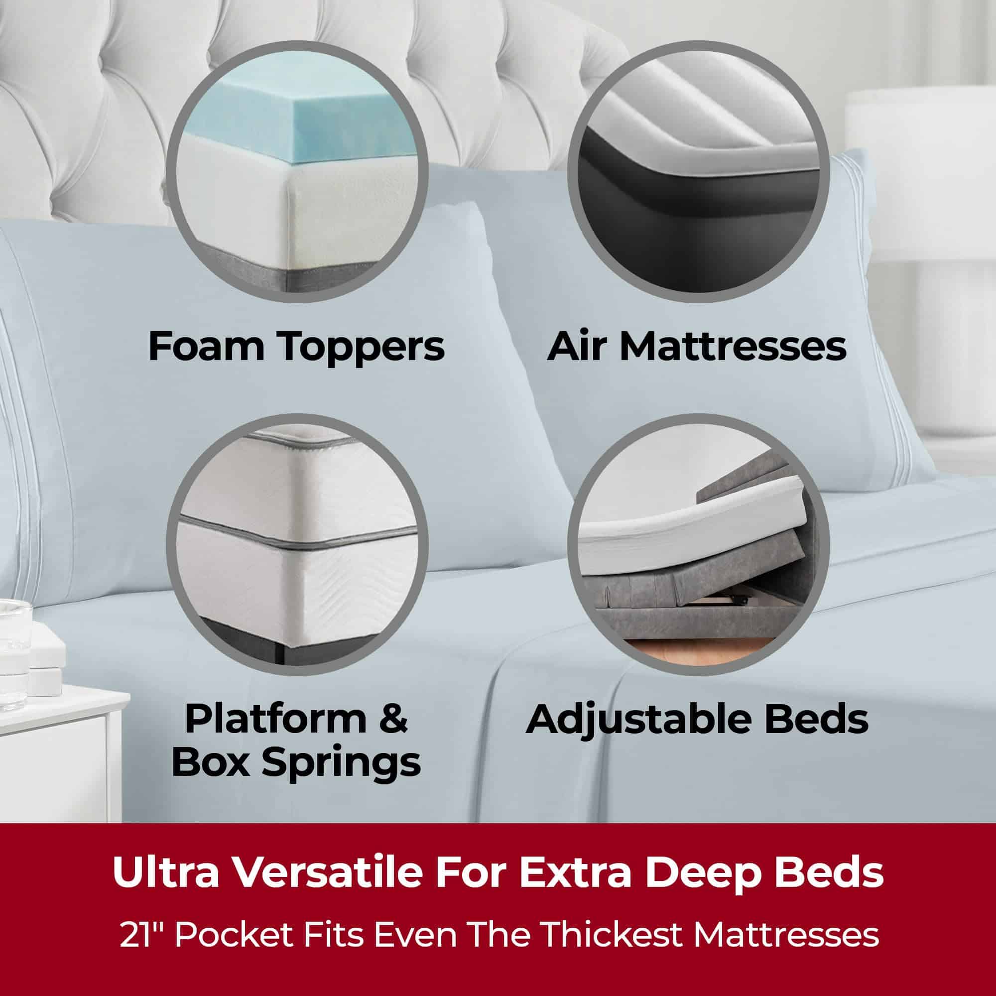 El ganador del premio Good Housekeeping Best Bedding ofrece una calidad inigualable y una construcción robusta para garantizar un ajuste perfecto en tu colchón. Las profundas bolsas de la sábana bajera pueden adaptarse a colchones de hasta 21 pulgadas de profundidad, mientras que el elástico cosido en todo el contorno facilita la colocación y la extracción, manteniendo las sábanas en su lugar durante la noche.