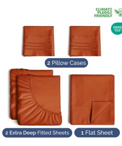 Juego de sábanas extraprotección para cama Split King – Juego de 5 piezas. Este juego de sábanas extraprotección para cama Split King es perfecto para colchones con almohadilla doble y colchones muy profundamente ajustados. Las sábanas son de microfibra, lo que las hace suaves y ligeras. El juego incluye una sábana plana de 113 pulgadas de ancho y 102 pulgadas de largo, una sábana ajustable de 39 pulgadas de ancho y 80 pulgadas de largo con bolsillos de 21 pulgadas, y dos fundas de almohada extragrandes de 20 x 40 pulgadas con un hermoso diseño de bordado. Estas sábanas son ideales para mantenerse ajustadas en todo momento y ofrecer una sensación de lujo y comodidad. ¡Haz que tu cama sea el lugar perfecto para relajarte con este juego de sábanas de lujo!