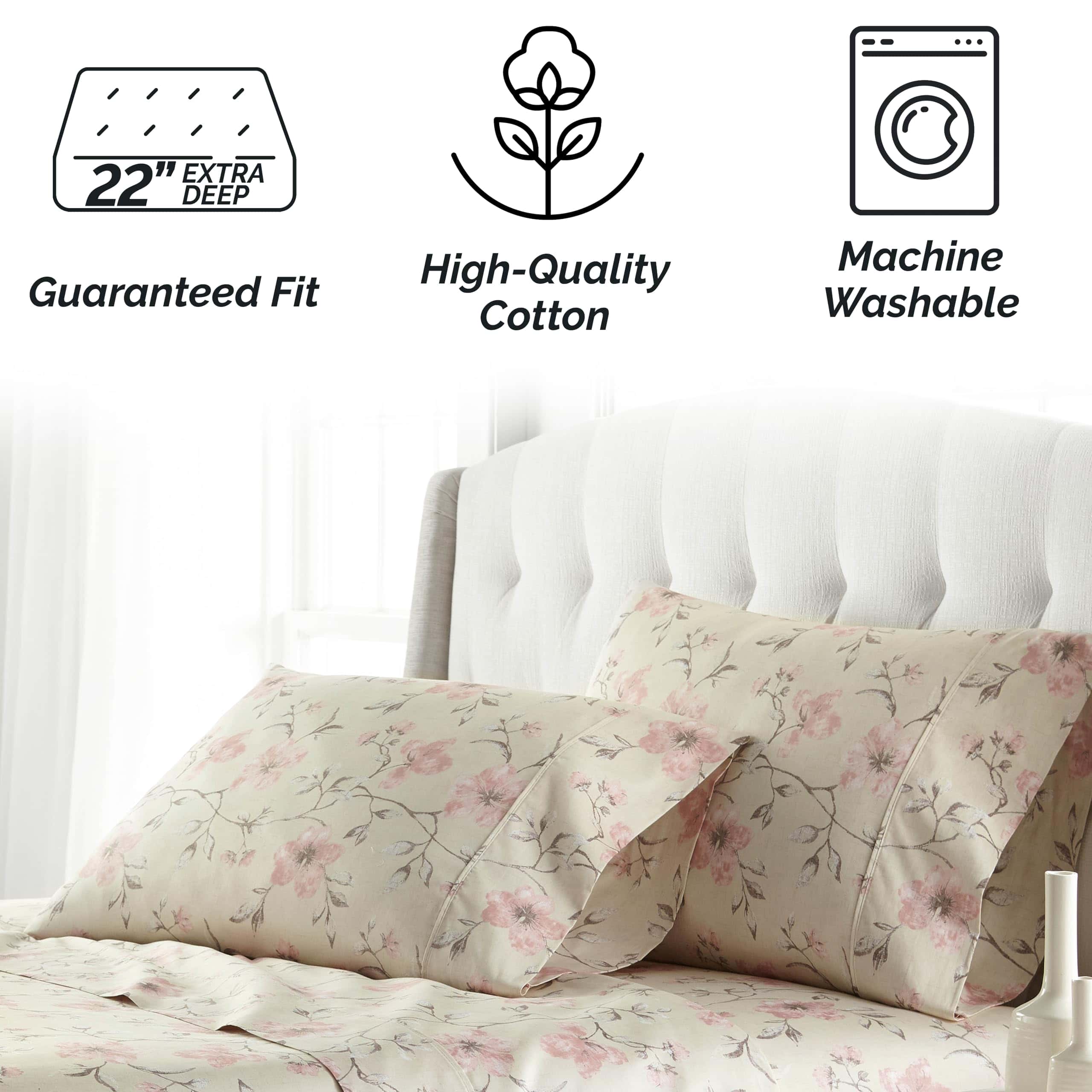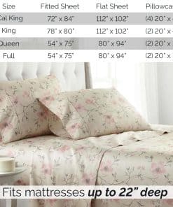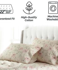 1. Juego de sábanas Flora de 4 piezas con bolsillo extra profundo en tamaño Queen incluye 1 Sábana Ajustable con bolsillo extra profundo y elástico en todo el contorno (60 pulgadas x 80 pulgadas x 22 pulgadas de profundidad), 1 Sábana Plana Queen (90″ x 102″) y Dos Fundas de Almohada Estándar (20″ x 30″). Nuestras sábanas ajustables son de 22 pulgadas de profundidad, lo que significa que pueden adaptarse fácilmente a sus colchones profundos sin salirse. El elástico en todo el contorno de nuestras sábanas ajustables cubrirá su lujoso colchón profundo y cualquier cubierta fácilmente, sin importar cuánto se dé la vuelta. 2. ¿Busca actualizar su dormitorio con un producto de calidad sin gastar mucho dinero? Nuestra colección de juegos de sábanas de 300 hilos es lo que busca. Estos juegos de sábanas tienen bolsillos extra profundos y están hechos con nuestro tejido de algodón de 300 hilos de la más alta calidad en tejido sateen. Son transpirables, ligeros y extremadamente suaves. Solo utilizamos las mejores fibras largas, de una sola capa, para hacer el tejido utilizado en nuestro juego de sábanas. Este es un producto de alta gama y tiene un acabado suave y lustroso. 3. Los juegos de sábanas de 300 hilos de algodón son verdaderos juegos de sábanas con bolsillos extra profundos que se ajustan fácilmente a colchones de hasta 21 pulgadas de profundidad sin resbalar. Nuestras sábanas son suaves y ligeras, transpirables, y se fabrican en una fábrica certificada OEKO-TEX 100. Garantizamos un ajuste cómodo en colchones de hasta 22 pulgadas de profundidad. Estas encajarán fácilmente en sus colchones incluso si tiene un topper o incluso colchones de aire altos. 4. Déjate envolver en un confort lujoso cada noche: Disfruta de un sueño reparador con nuestros juegos de sábanas excepcionalmente suaves y cómodos, hechos de 300 hilos de algodón 100% de fibra larga. Estas sábanas ligeras resisten la decoloración y el apelotonado, saliendo frescas de la secadora cada vez y volviéndose más suaves con cada lavado. 5. EXPERIENCIA LIBRE DE PREOCUPACIONES DE 30 DÍAS: Nuestros productos vienen con un periodo de prueba sin preocupaciones de 30 días. Si no estás satisfecho, contáctanos para discutir las opciones de devolución o reembolso. Además, nuestra protección de 90 días contra defectos garantiza un rendimiento excepcional y un servicio al cliente incomparable.