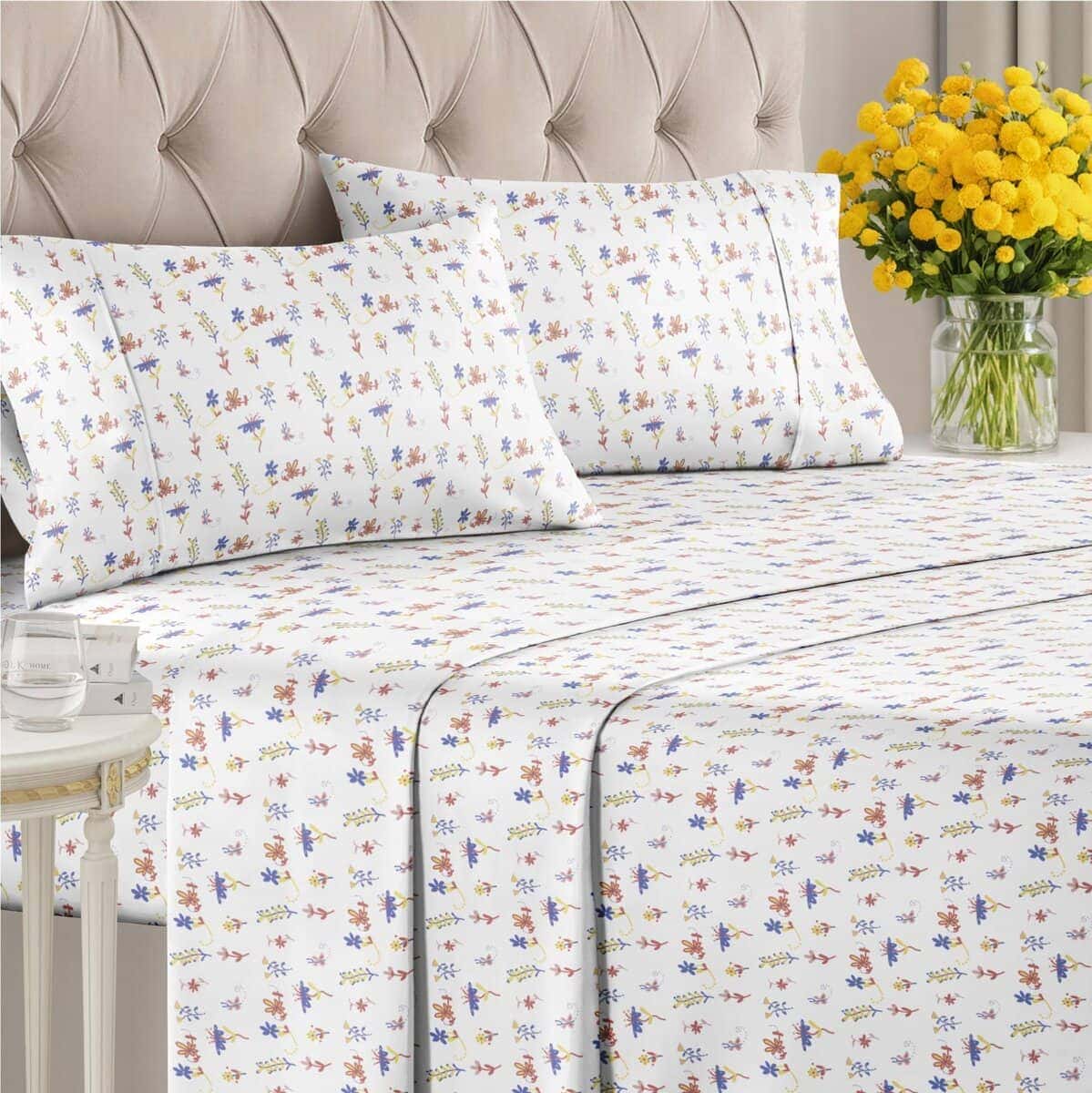 Rey blanco brillante rosa blush gris beige crema bronceado patrón boho sábanas florales decoración shabby chic algodón bolsillos profundos bambú seda hotel microfibra juego de sábanas de lujo enfriamiento premium ropa de cama costera farmhouse coquette