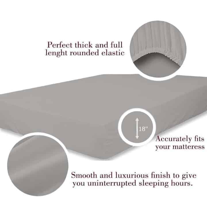 Hecho de algodón egipcio de lujo de 800 hilos: este juego de sábanas está hecho de algodón egipcio premium de fibra larga, ofreciendo una tela suave, lisa y duradera con un elegante tejido satén. La construcción de 800 hilos garantiza una sensación densa pero transpirable para una experiencia de sueño tipo hotel en casa. Bolsillos extra profundos de 18 pulgadas para ajuste seguro: la sábana ajustable cuenta con bolsillos profundos de 18 pulgadas con borde elástico para adaptarse de manera segura incluso a los colchones más gruesos, incluidos los que tienen toppers o almohadillas. No más deslizamientos o arrugas, solo un ajuste perfecto cada vez.