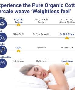 Presentamos nuestras sábanas de cama de percal 100% algodón orgánico fabricadas con algodón orgánico certificado, libre de sustancias dañinas. Experimente la sensación crujiente y fresca de la tela de percal, que le proporcionará un sueño lujoso y cómodo todas las noches. Nuestras sábanas gemelas orgánicas de 300 hilos son suaves y transpirables, manteniéndolo fresco en verano y cálido en invierno. No solo ofrecen una comodidad y calidad excepcionales, sino que también promueven una mejor salud y bienestar. Según la National Sleep Foundation, las telas sintéticas pueden perturbar el sueño y causar problemas de salud, mientras que las sábanas de algodón 100% promueven una regulación natural de la temperatura y un mejor funcionamiento diurno. Entendemos la importancia de la durabilidad y la transparencia, y nuestras sábanas están certificadas por Oekotex Standard 100, lo que garantiza que están libres de sustancias dañinas. Nuestra fábrica de propiedad y operada por nuestra familia en India utiliza procesos de fabricación ambientalmente responsables y no utilizamos plástico en nuestro embalaje. Nuestro juego de sábanas gemelas de algodón orgánico puro blanco de 4 piezas incluye 1 sábana superior, 1 sábana ajustable inferior con elástico en todo su contorno que se adapta a colchones de 8 a 14 pulgadas de profundidad, y 2 fundas de almohada de tamaño estándar / queen. El elástico premium ancho y antideslizante no se aflojará ni se amontonará, y los indicadores de lado de la cabeza / pie facilitan hacer la cama. Experimente la máxima indulgencia sensorial y duerma tranquilo sabiendo que está rodeado de materiales naturales y ecológicos. Actualice su ropa de cama hoy con nuestras sábanas de cama de percal 100% algodón orgánico.