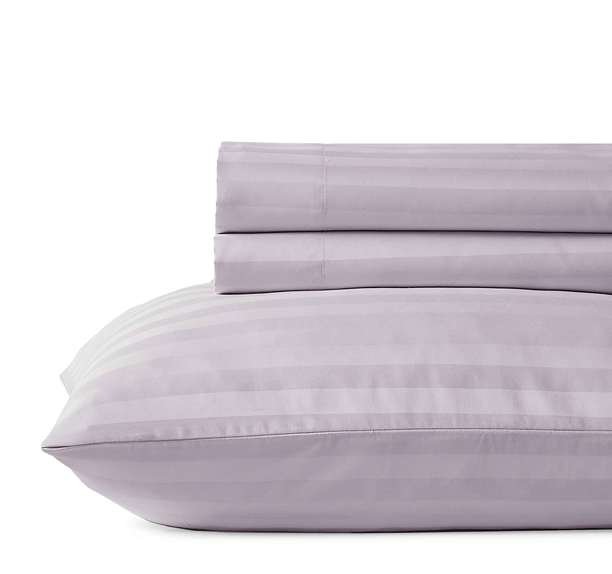 Descansa en la suavidad de las sábanas gemelas California Design Den, hechas de algodón 100% para una experiencia fresca y cómoda. Con 500 hilos y un diseño de rayas damasco, estas sábanas son perfectas para brindarle a tu habitación un toque de elegancia. Los bolsillos profundos aseguran un ajuste seguro en tu colchón, mientras que la calidad de hotel te garantiza noches de sueño reparador. Añade un toque de lujo con este juego de sábanas gemelas en un hermoso tono de lavanda con rayas.