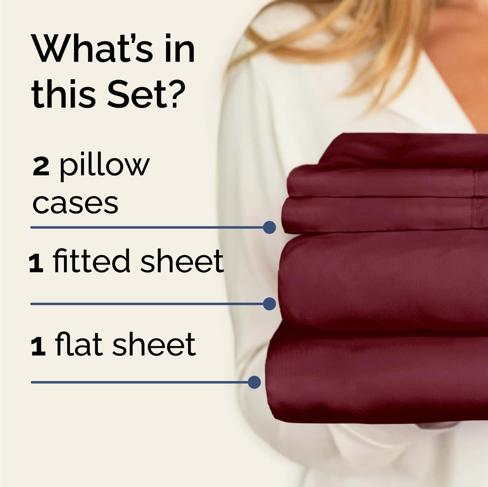 Juego de Sábanas Gemelas de 4 Piezas – Cómodas, -Borgoña