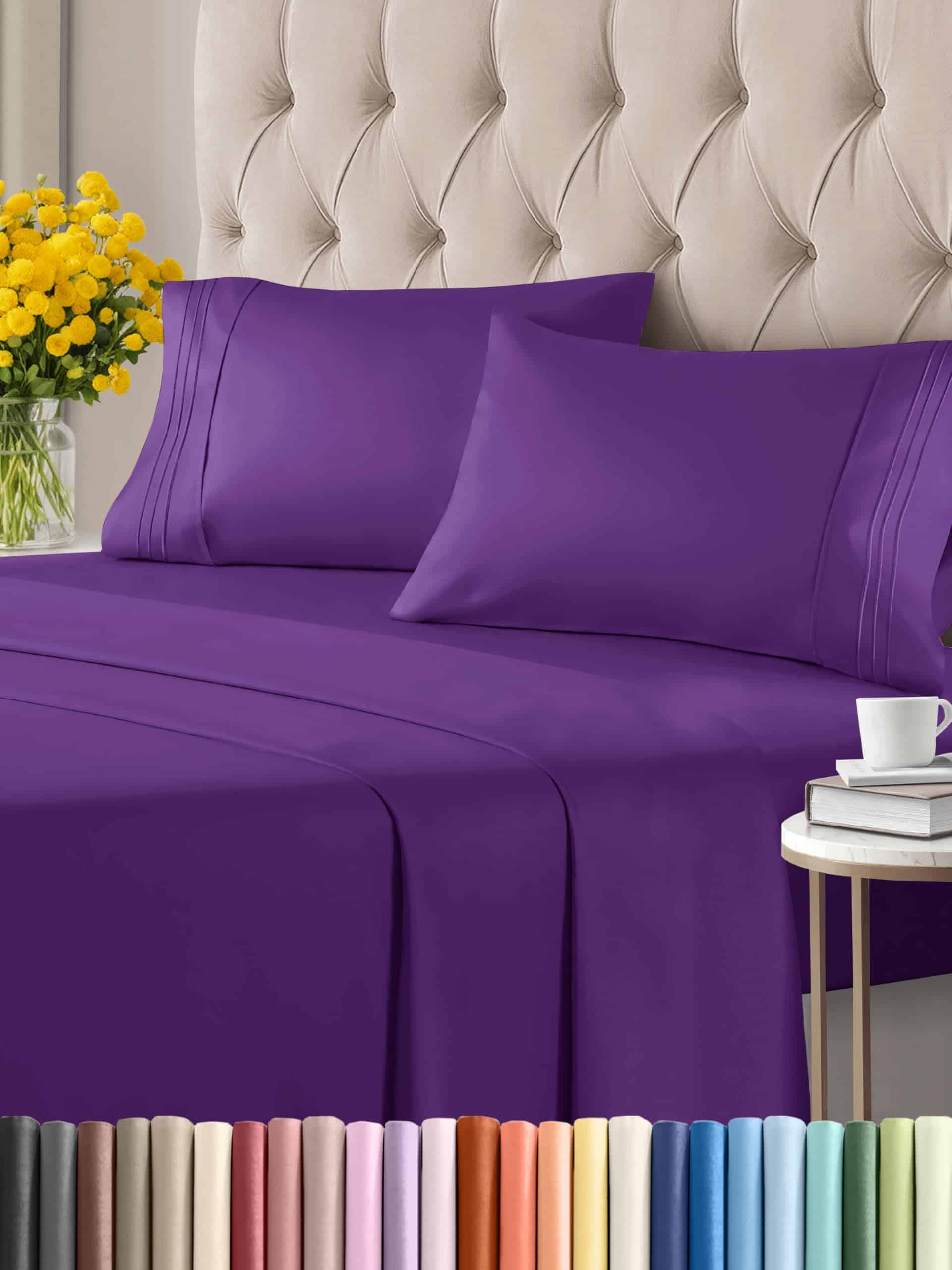 Juego de Sábanas Gemelas de 4 Piezas – Cómodas, -Morado