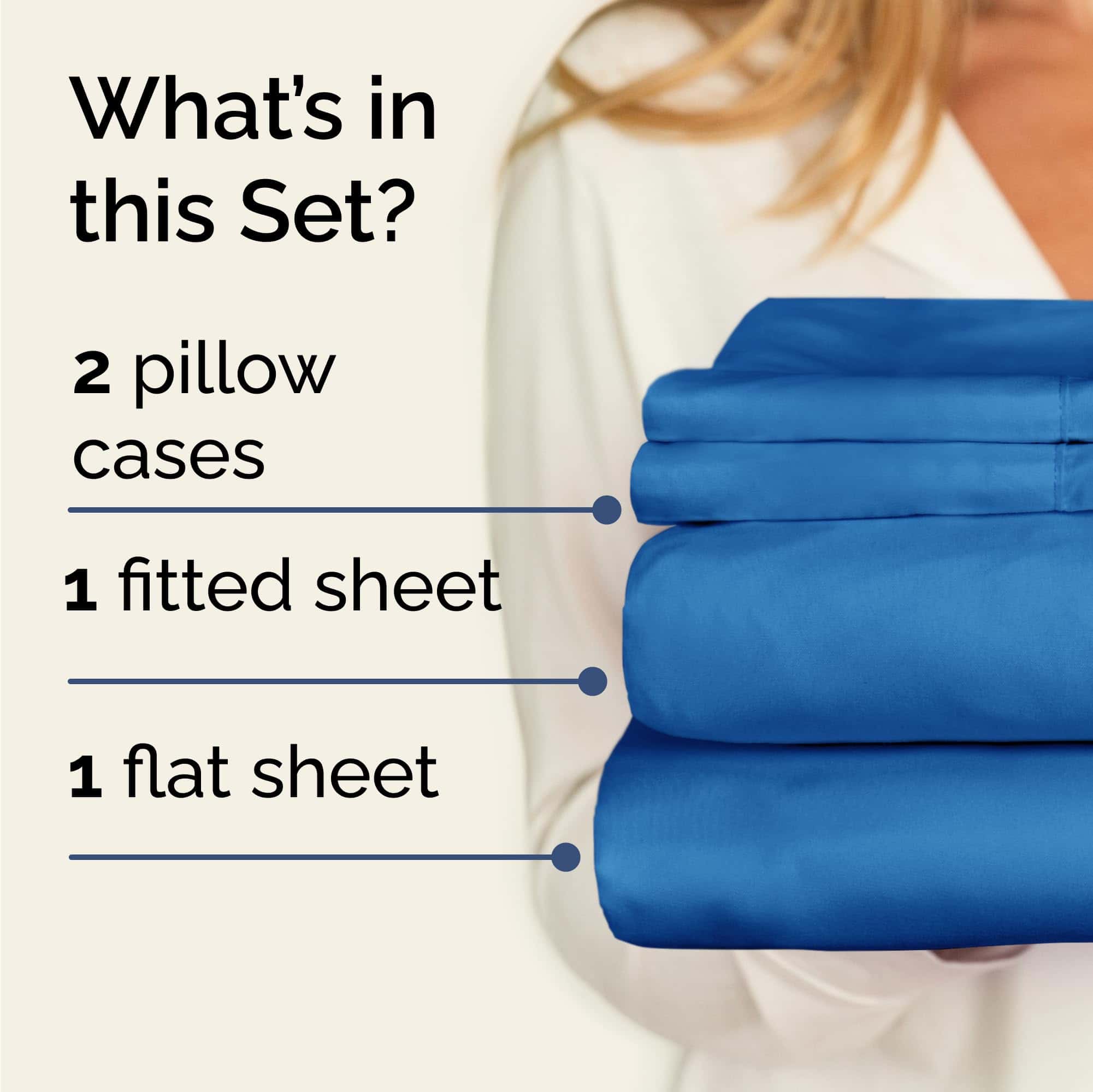 Juego de sábanas gemelas de 4 piezas – Cómodo, -Azul real