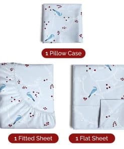 Juego de sábanas gemelas de Navidad con pájaros azules