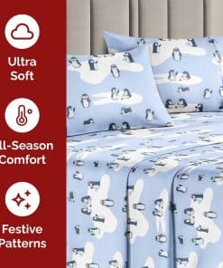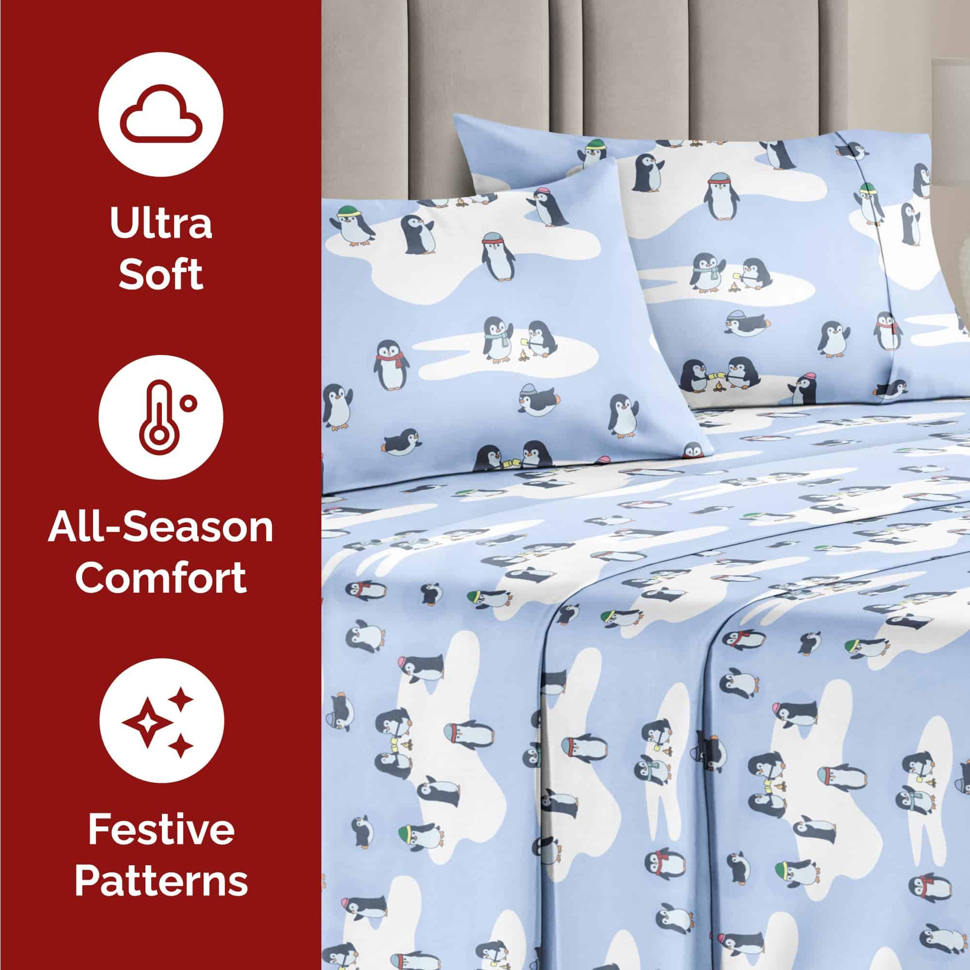 Juego de sábanas gemelas de pingüinos navideños – Juego de