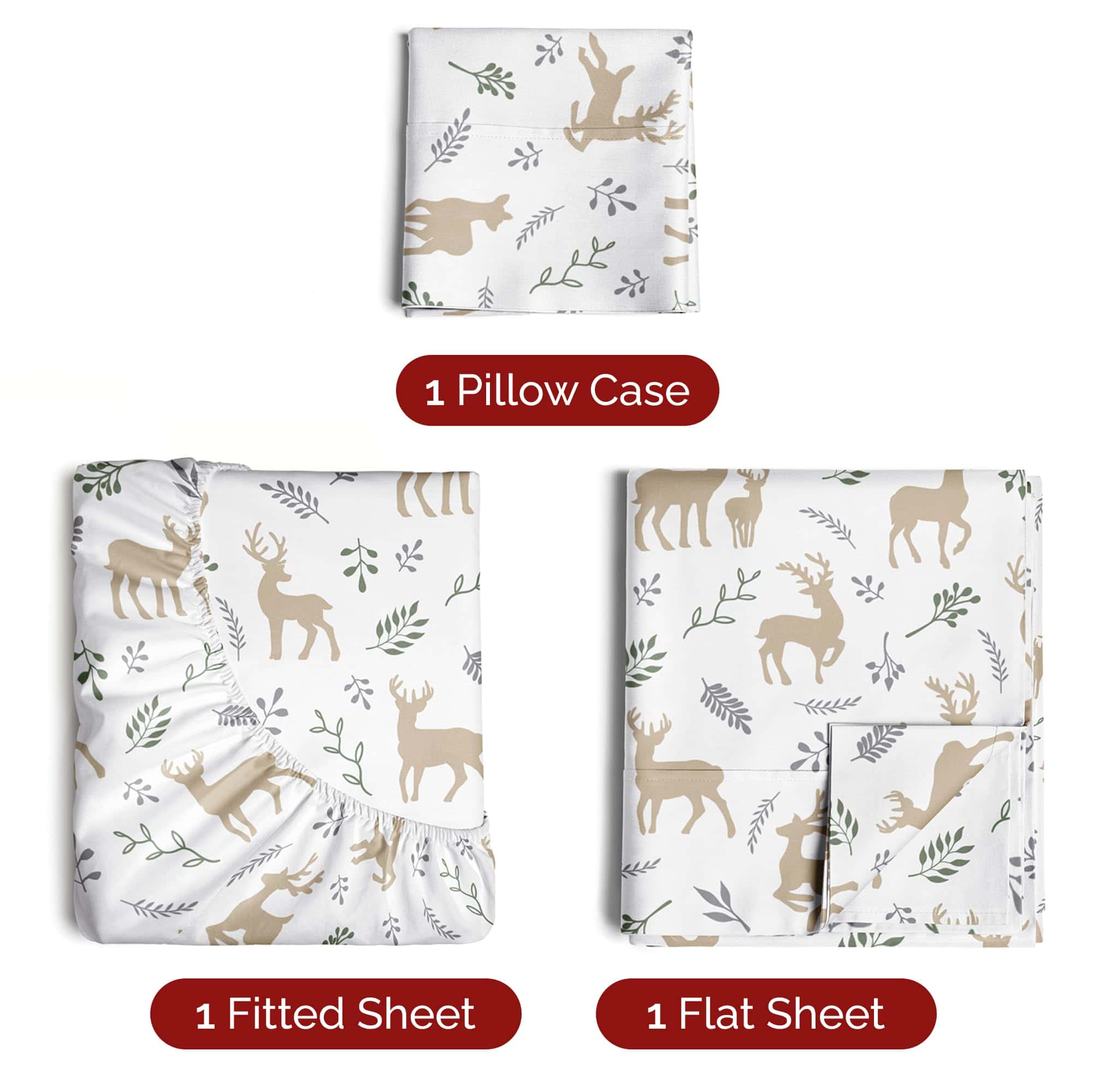 Juego de Sábanas Gemelas de Renos Navideños – Estampado