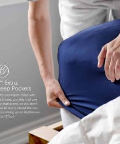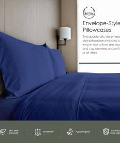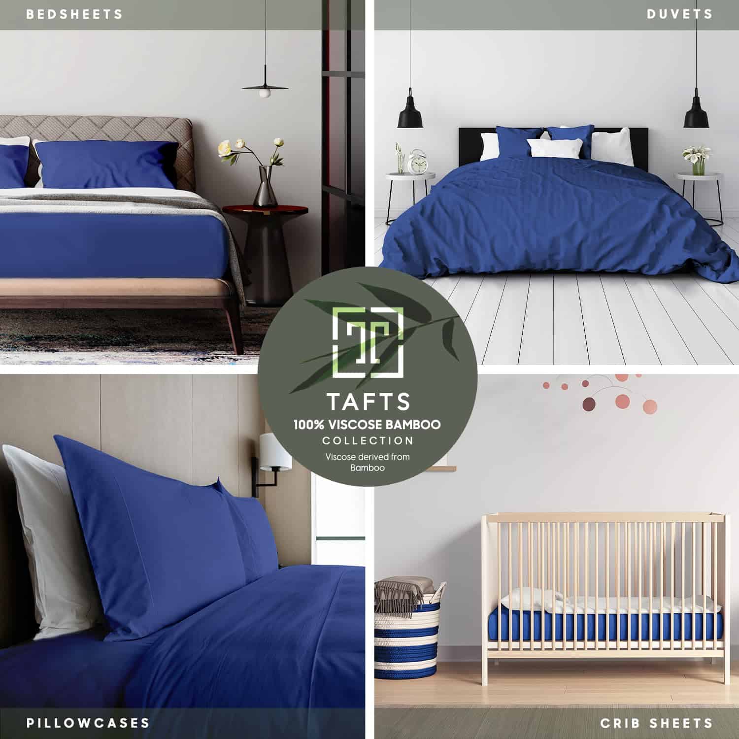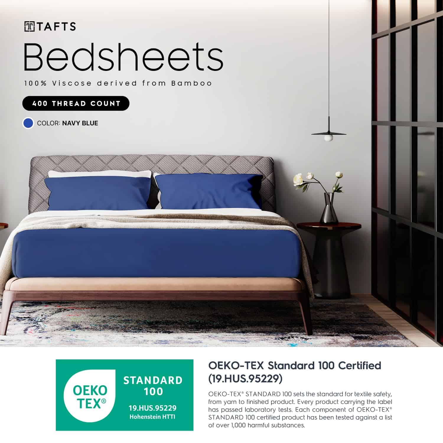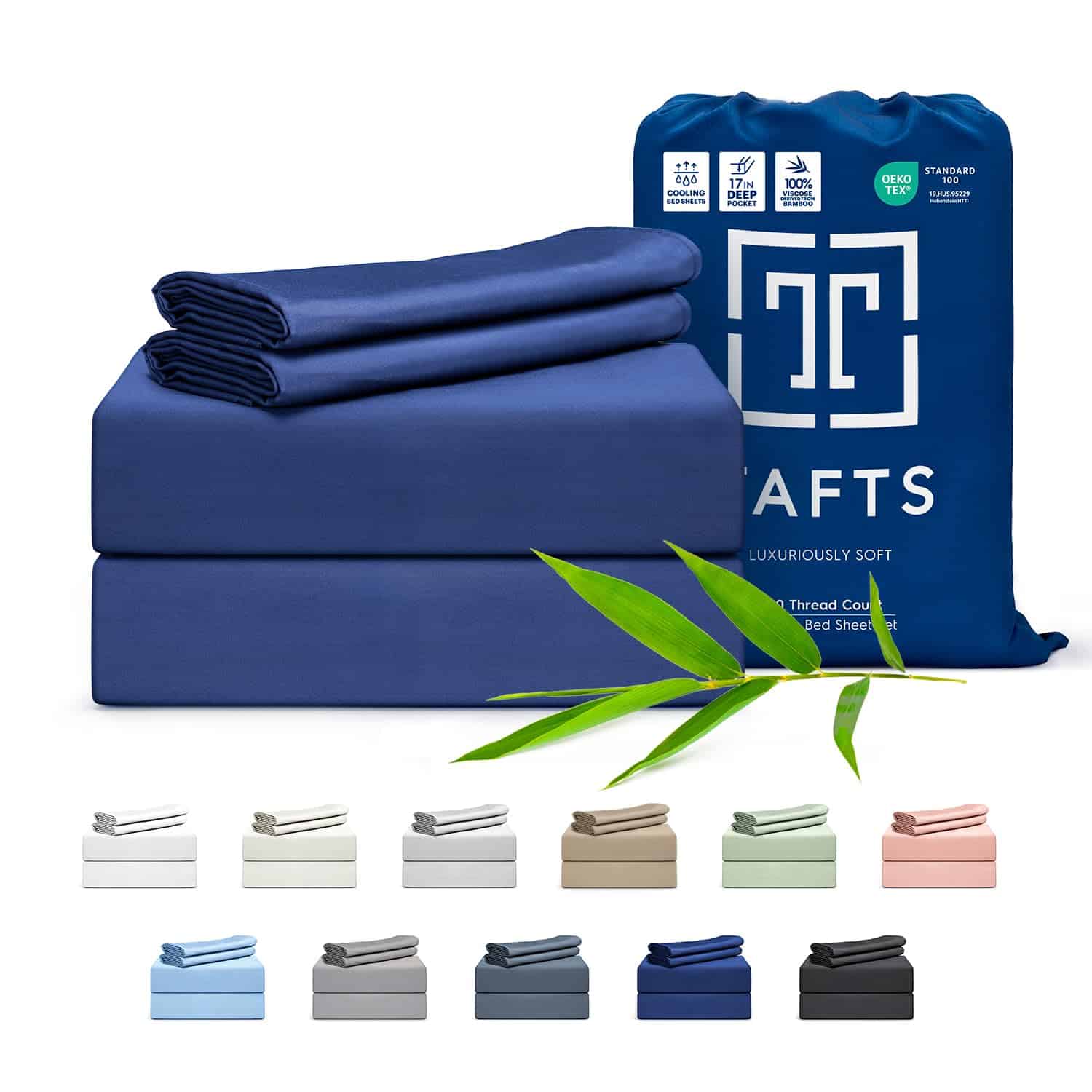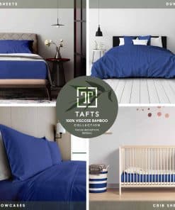 Juego de sábanas gemelas de Tafts, 100% viscosa derivada del bambú, suavidad lujosa, sedoso, sábanas refrescantes, doblemente cosidas, promesa de calidad de por vida (Azul Marino)