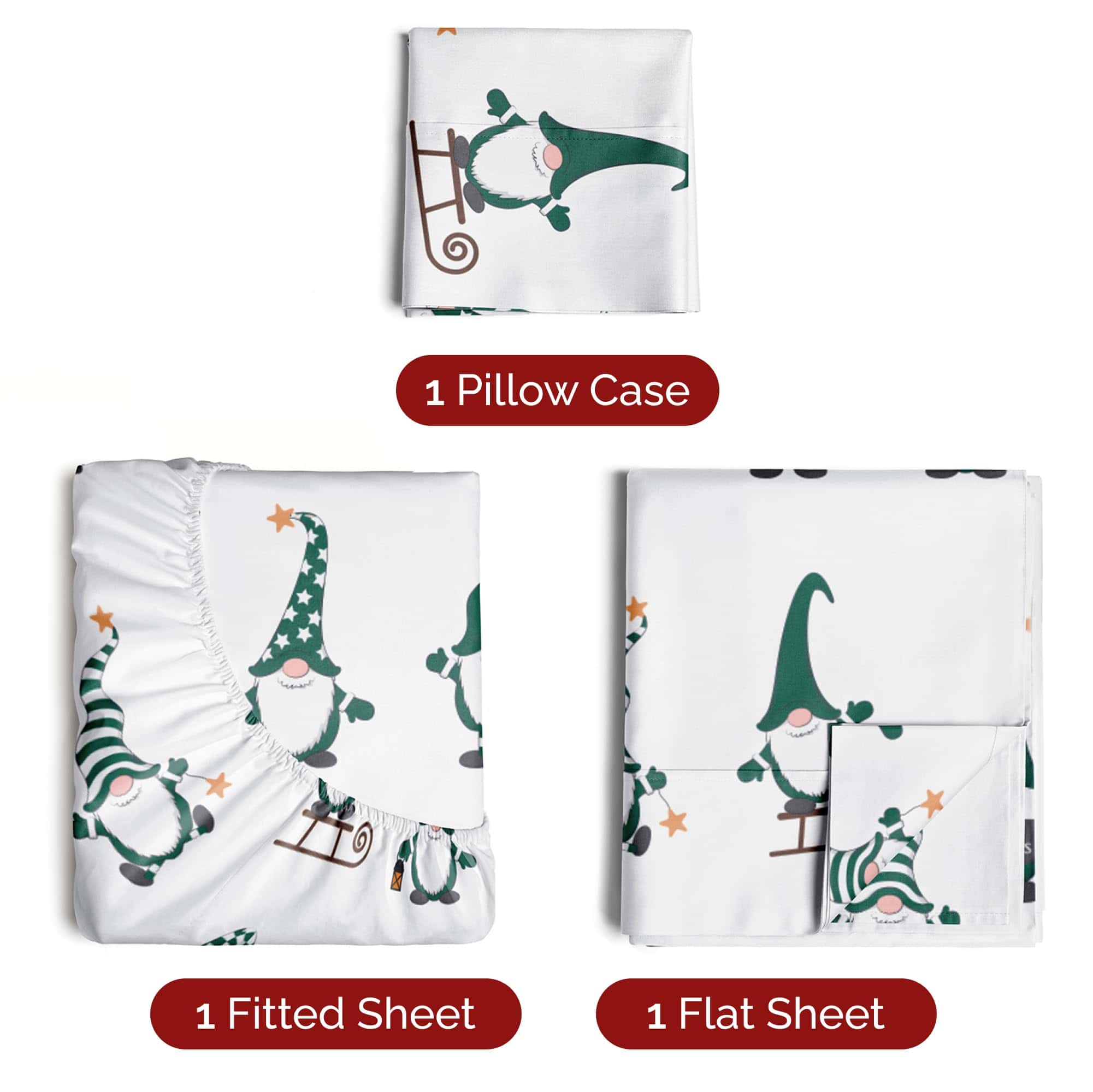 Juego de sábanas gemelas navideñas verdes Gnome – Juego de