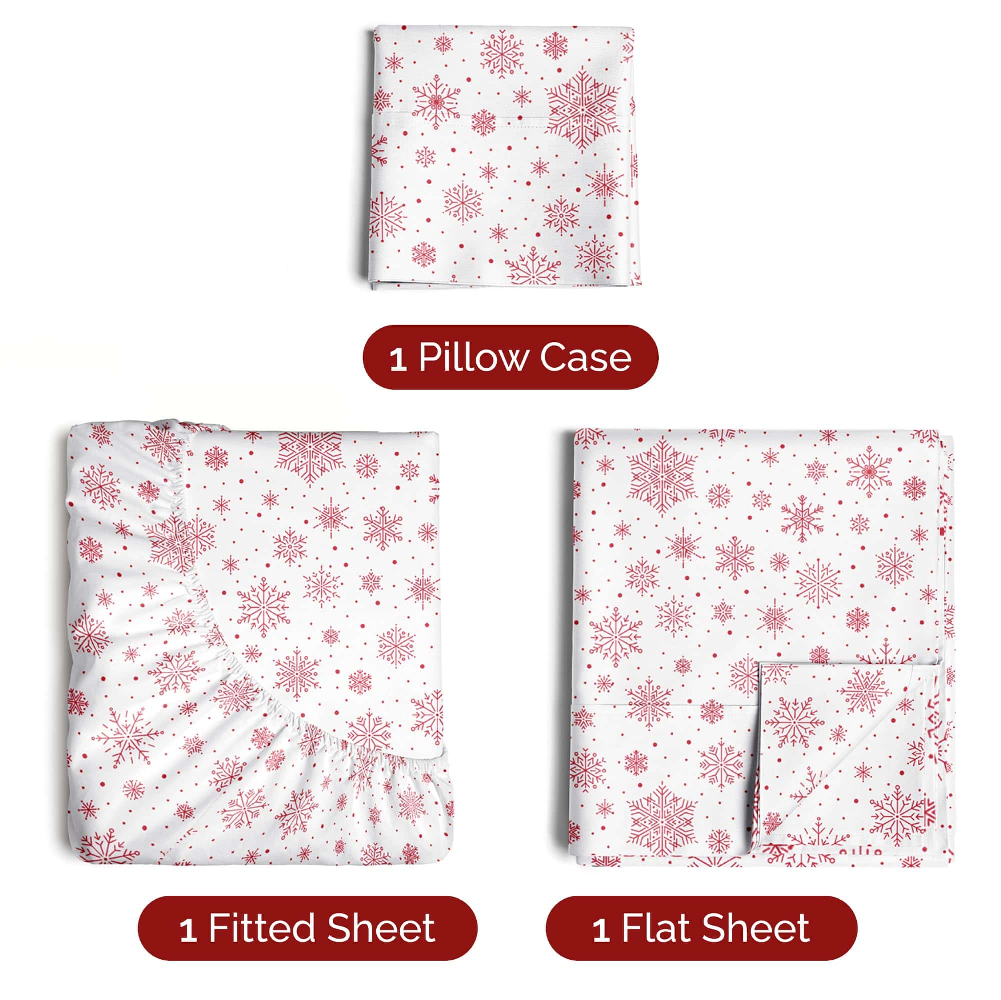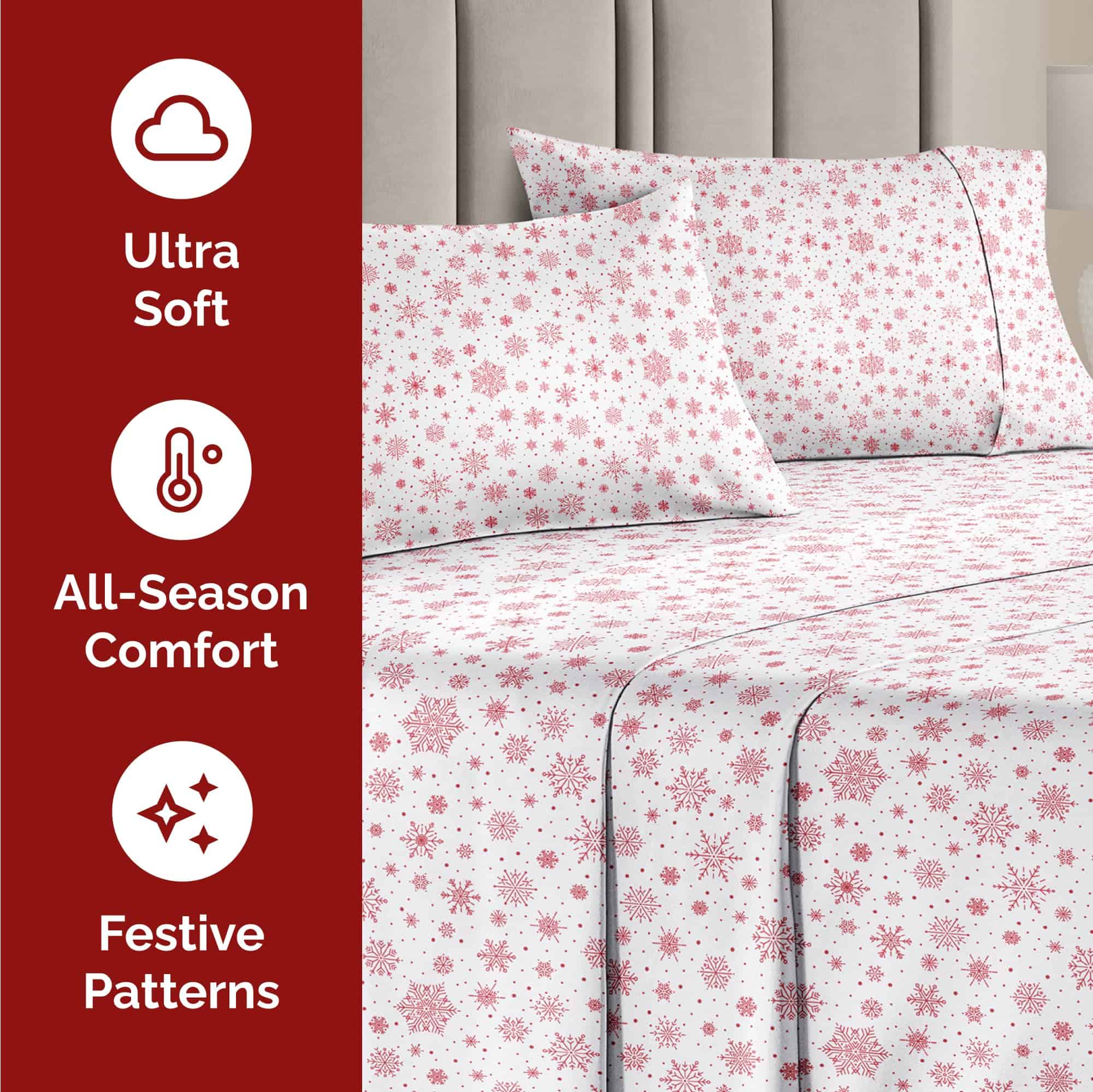 Juego de sábanas gemelas Twin Christmas Red Snowflakes –