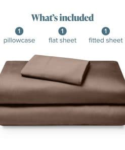 Incluye 1 sábana ajustable gemela XL de bolsillo profundo (39 x 80 x 15), 1 sábana plana gemela XL (66 x 100) y 1 funda de almohada estándar (20 x 30).