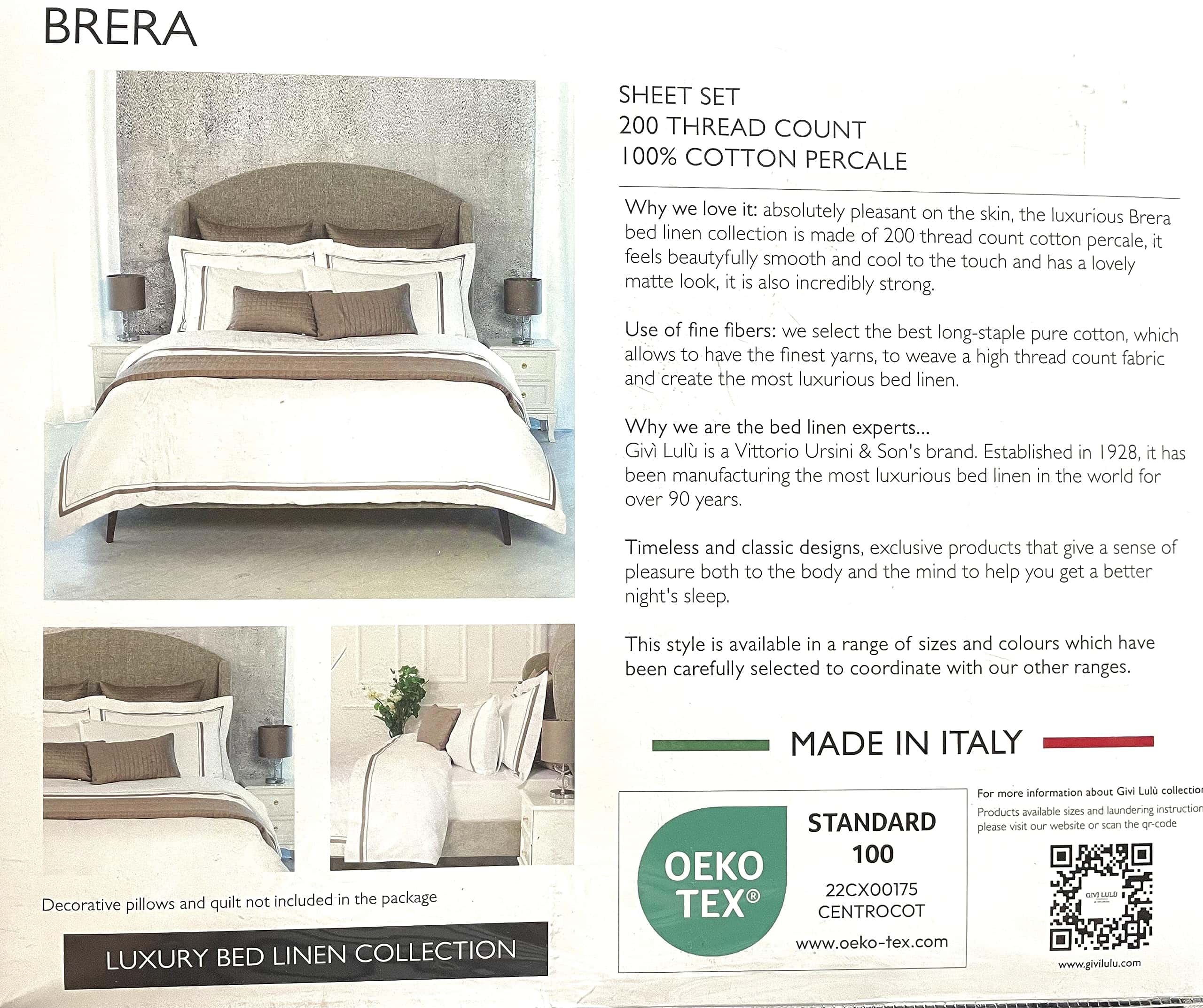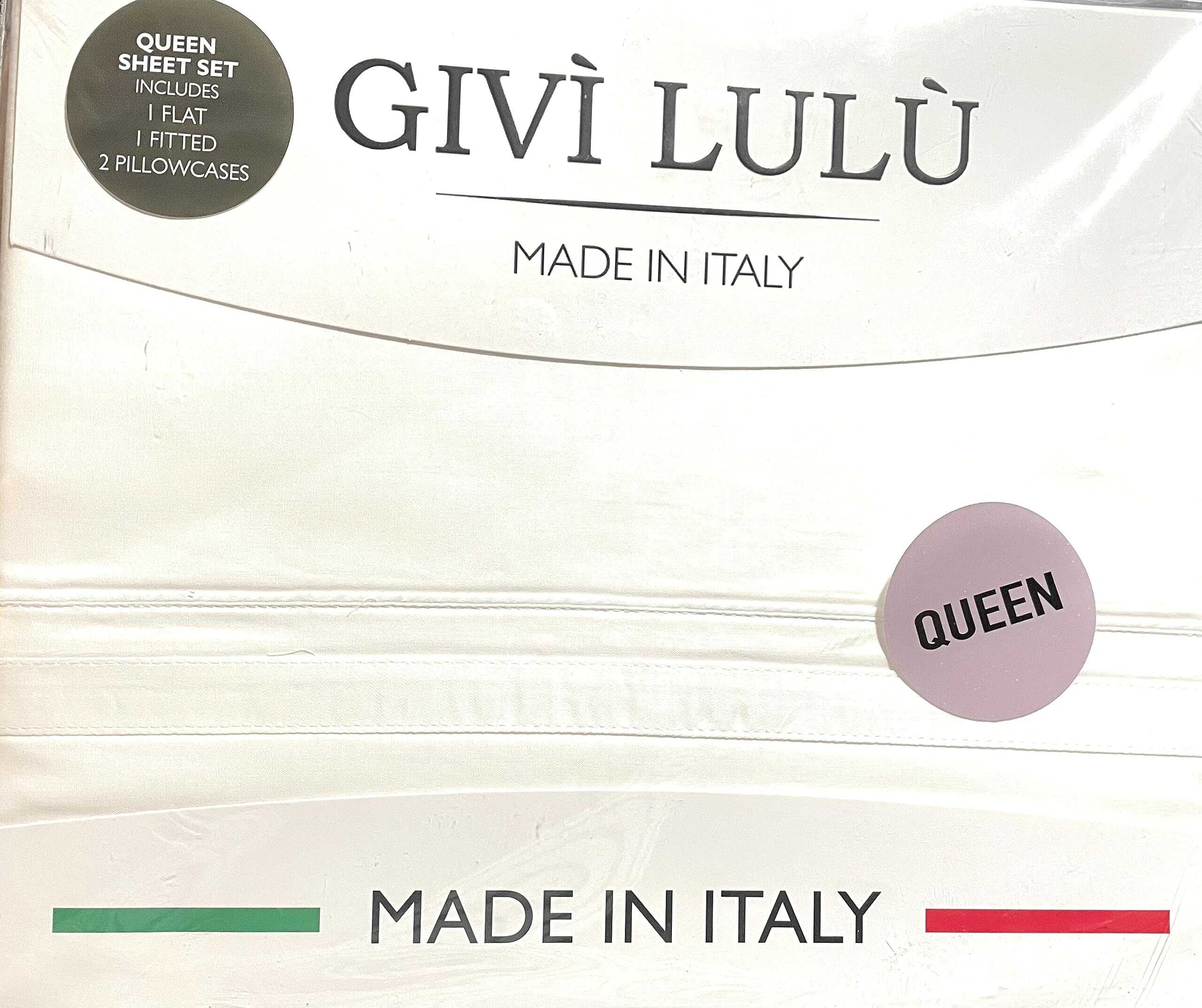 Este juego de sábanas de lujo Givi Lulu de 4 piezas es blanco sólido con múltiples hermosos patrones. La ropa de cama de diseñador italiano de lujo Givi Lulu es conocida por su excelente calidad y hermosos diseños. Este juego de cama es 100% algodón, suave al tacto, transpirable y cómodo por la noche. El juego incluye 1 sábana plana, 1 sábana ajustable y 2 fundas de almohada.
