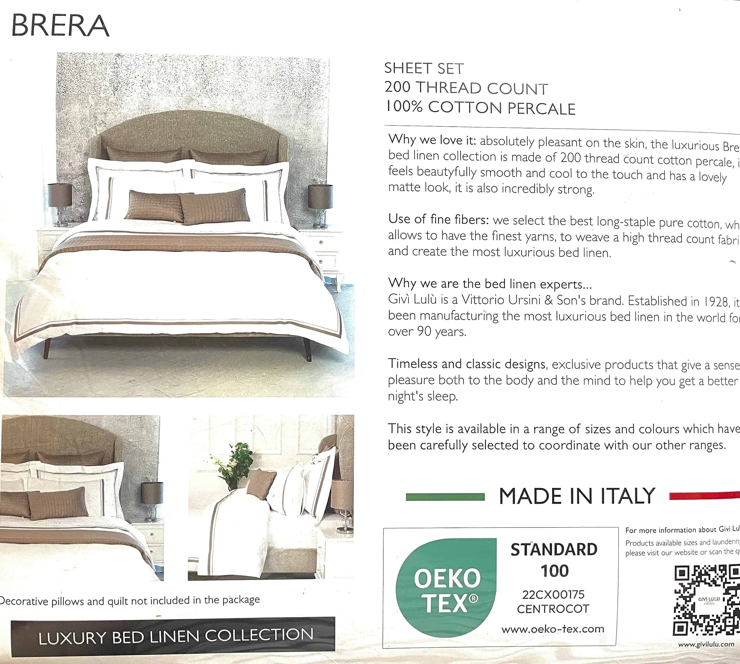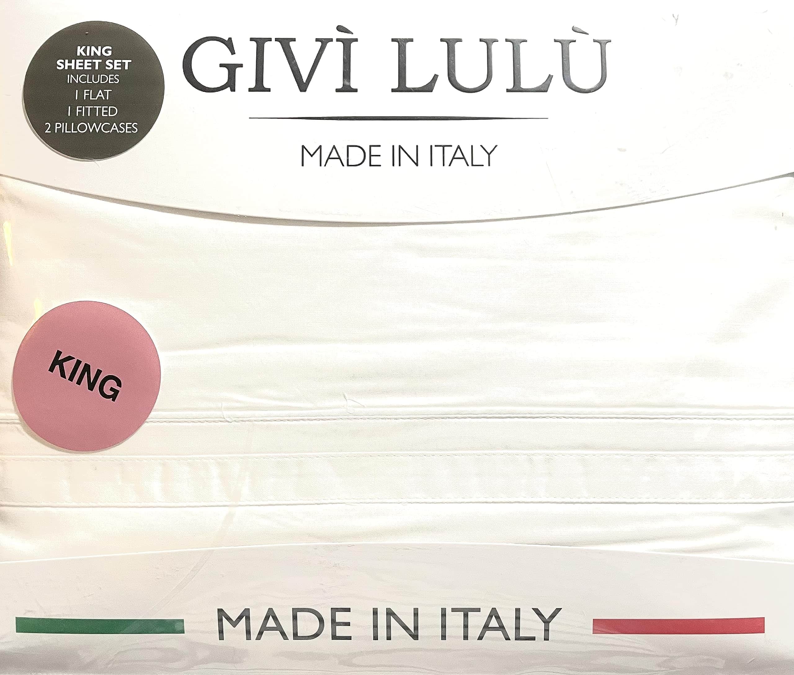Este juego de sábanas de lujo Givi Lulu de 4 piezas es blanco sólido con múltiples patrones hermosos. La ropa de cama de lujo fina italiana de Givi Lulu es conocida por su calidad superba y diseños hermosos. Este conjunto de ropa de cama es 100% algodón, suave al tacto, transpirable y cómodo por la noche. Incluye 1 sábana plana, 1 sábana ajustable y 2 fundas de almohada.
